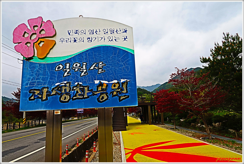 큼직한 자생화공원 안내판이 높게 세워져 있고