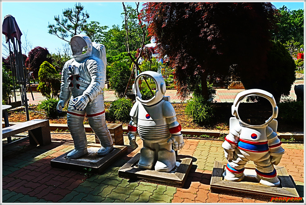 벽화를 비롯해 우주인 사진촬영 모형,