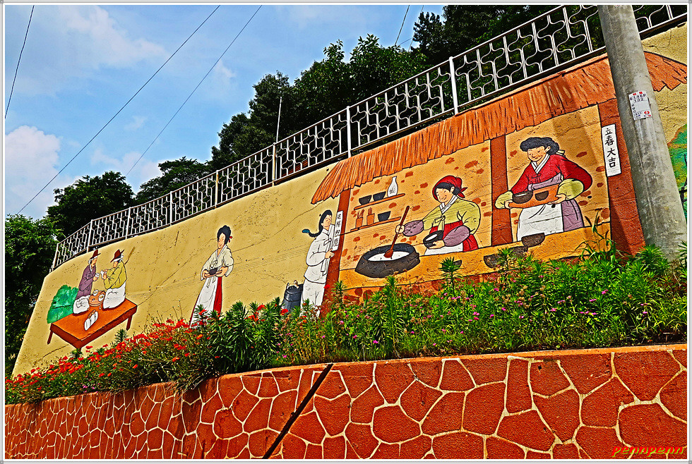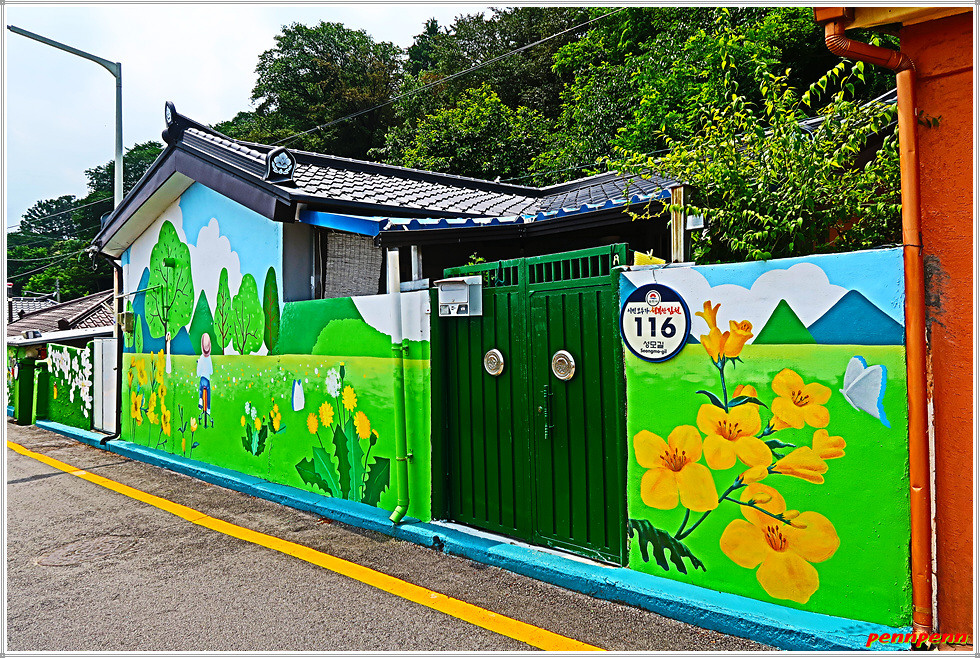 화려한 색상의 벽화가 이방인의 눈길을 끕니다.