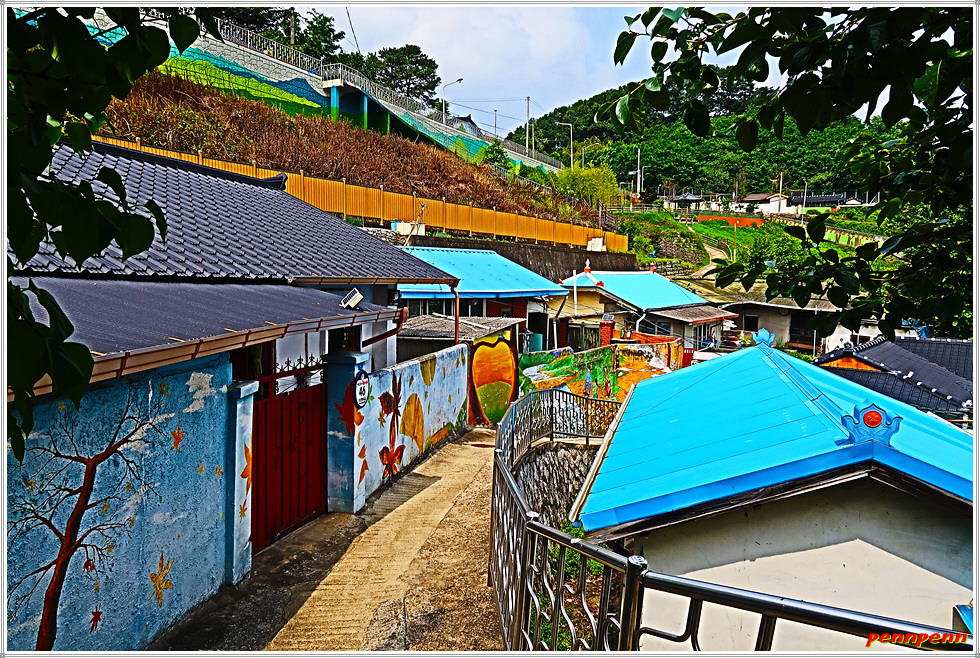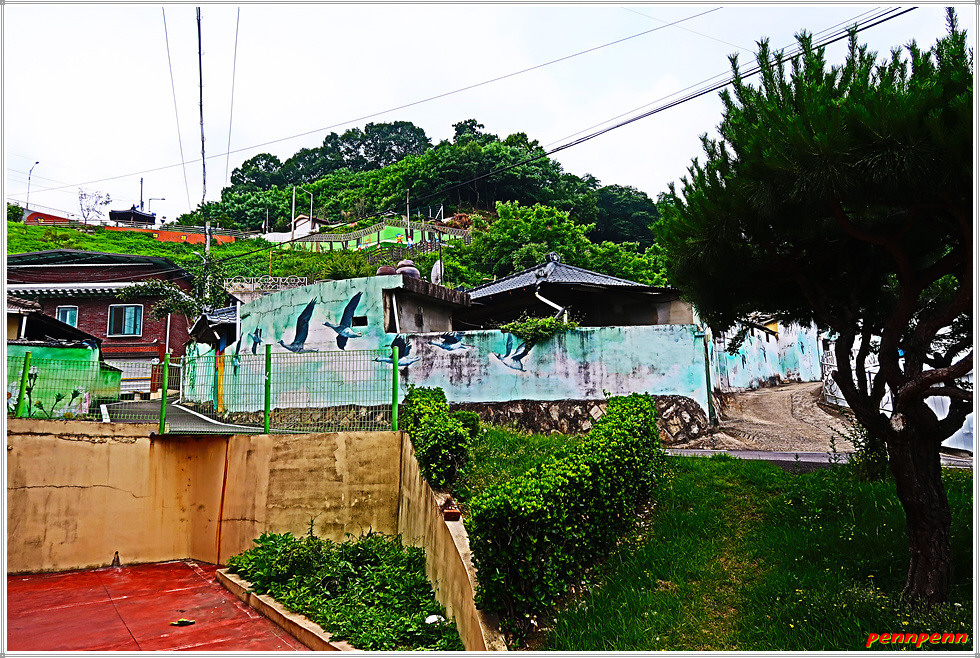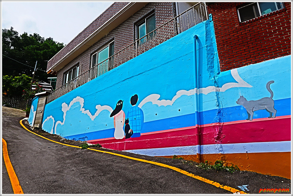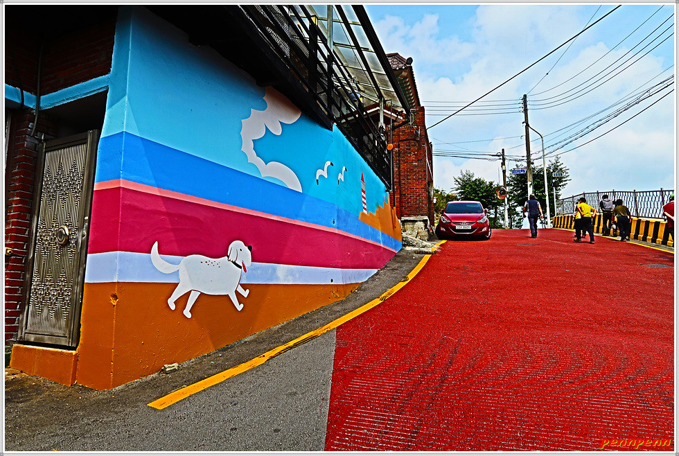 또 좌측의 건축물 담장에는 시원스런 벽화가 그려져 있어