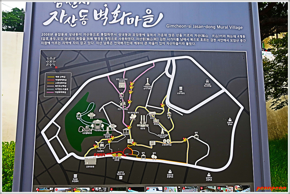 경북 김천 소재 자산동 벽화마을은 자산동 충혼탑을 기점으로