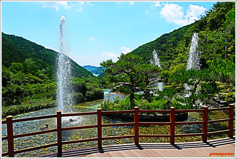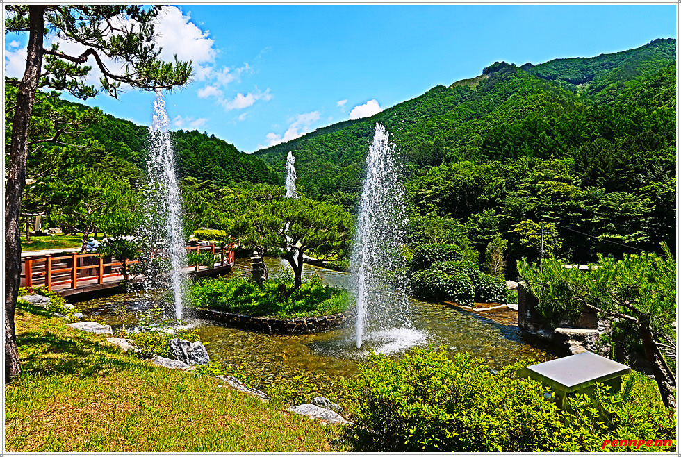 개천위로 내뿜는 분수대는 무더위를 식혀주는 청량제 같습니다.