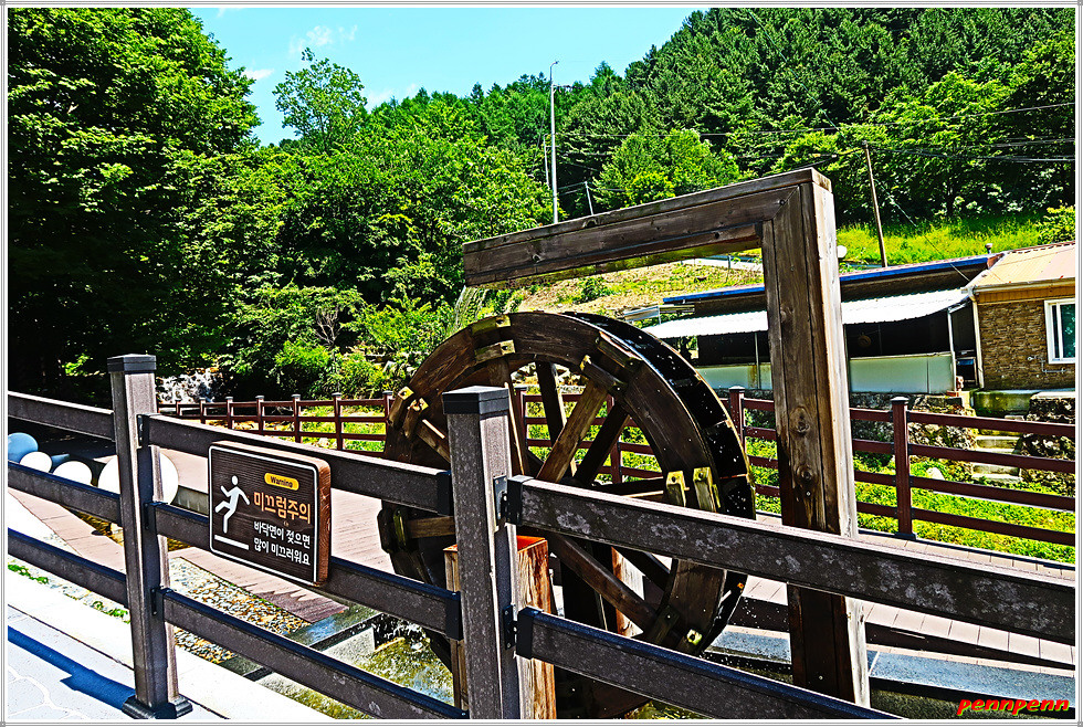 봉화객주에서 안쪽으로 들어서면 실개천변에 물레방아와 산책로가 있는데