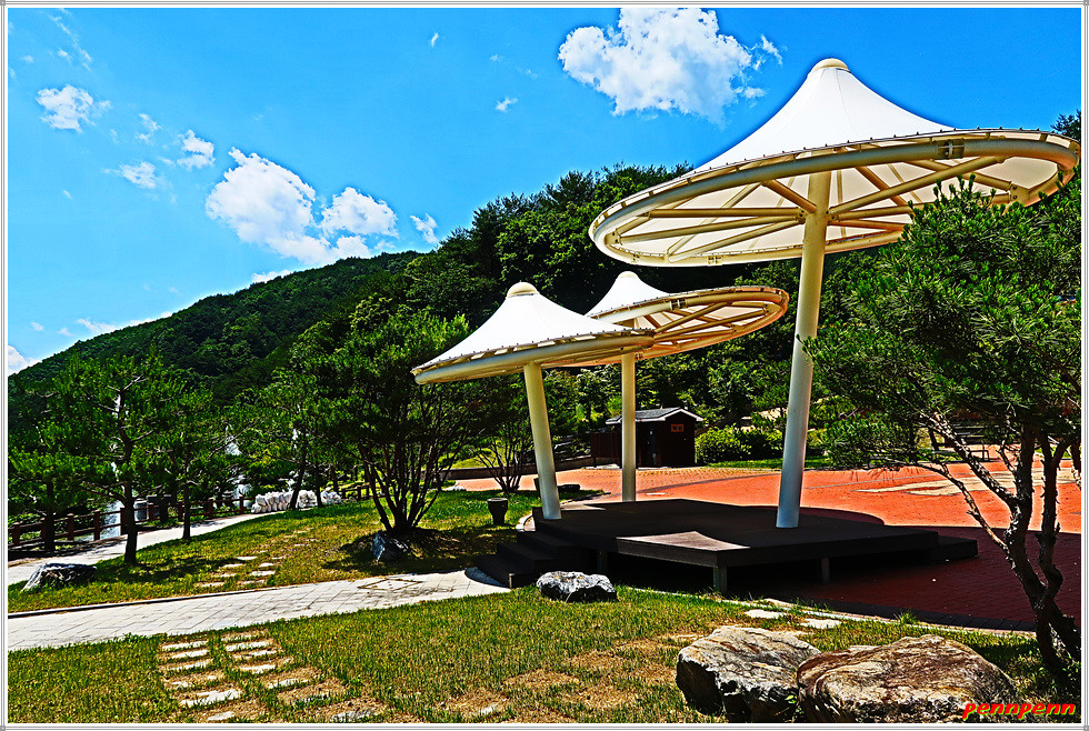 분수대 위쪽으로 오르면 넓은 공원 터에 정자와 쉼터가 있고