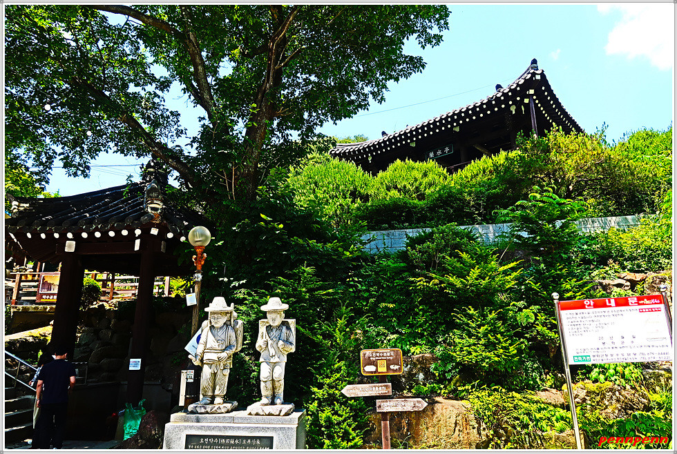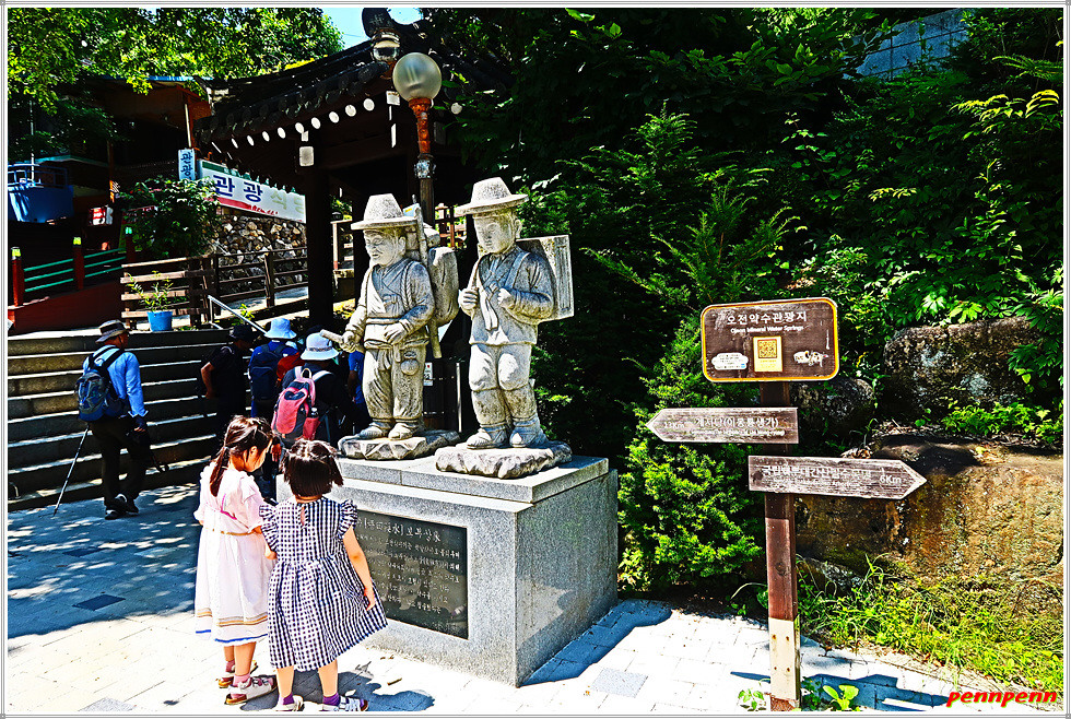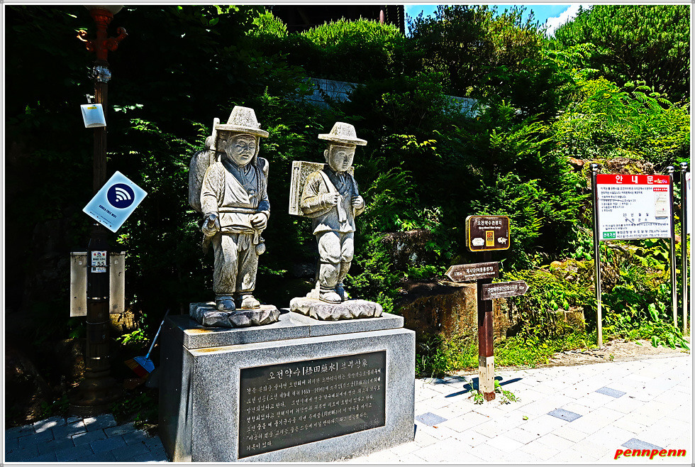 약수터 옆에는 2명의 보부상 석상(石像)이 있어