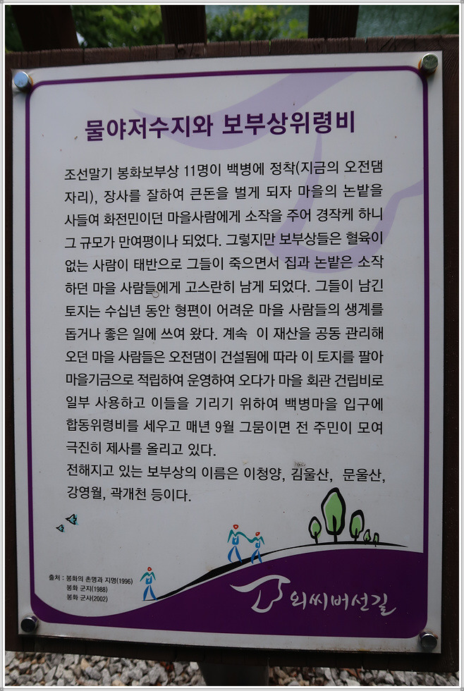 객주에서 물야저수지 방면으로 조금 가면 보부상위령비가 있는데요.