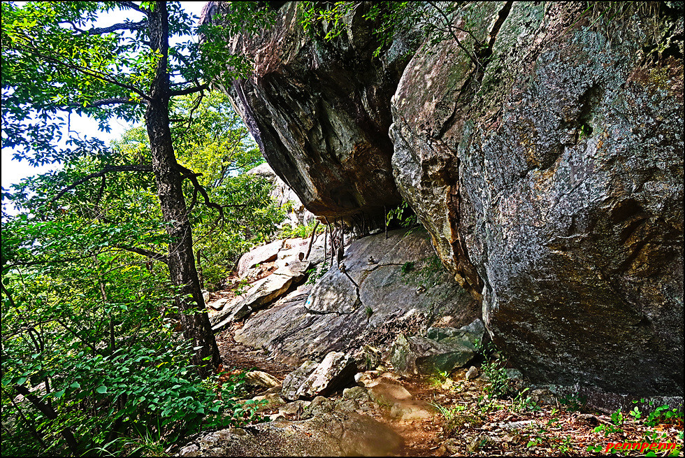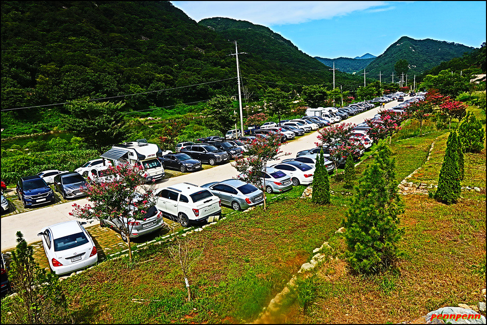 그런데 산악회 회원들은 대형버스를 타고 하늘길 입구로 진입하지 못하는 열악한 도로사정에 대해 불만이 많았습니다. 고속도로 버스전용차선의 경우 대중교통수단인 버스의 통행편의를 제공하고 승용차이용자들을 불편하게 만드는 제도입니다. 반면 이곳에서는 좁은 도로사정으로 인해 승용차 이용자들은 입구까지 자유롭게 진입할 수 있지만 버스 이용자들은 무더위에 딱딱한 도로를 왕복 3km이상 걸어야하는 불편을 감수해야 합니다. 필자가 6년 전 이곳에 왔을 때는 요강바위 주차장까지 버스출입이 가능했는데 이젠 불가능하니 안타깝습니다. 왜 버스이용자들을 홀대하는지 원성이 많았기에 관계당국은 조속이 대형버스가 하늘길 입구까지 운행될 수 있도록 도로를 확장정비하기를 건의합니다.
