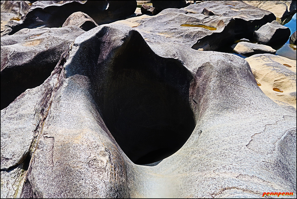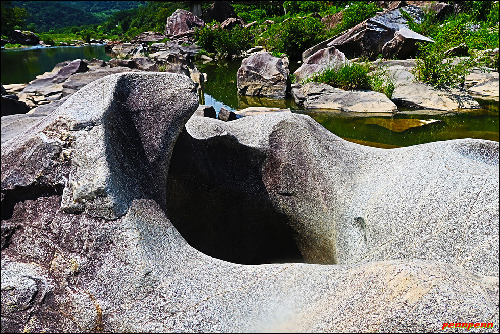 그 중에서 요강바위는 일명 돌개구멍 현상입니다.