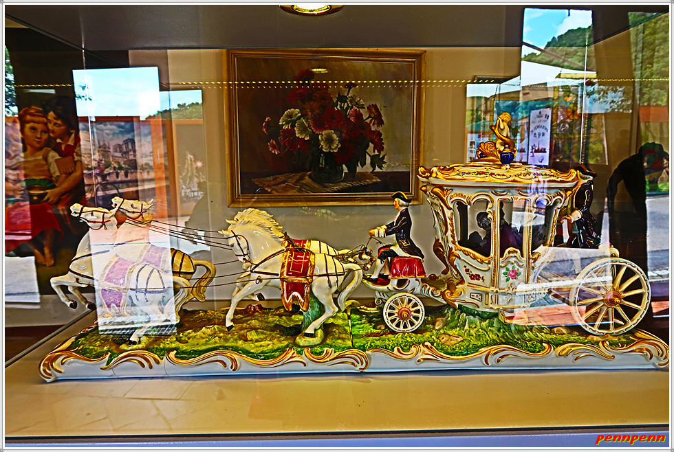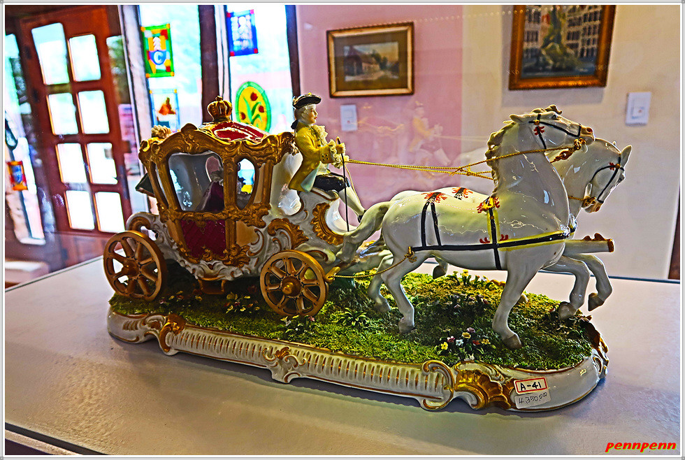이곳 도자기예술작품은 마부가 말을 몰고 달리는 모습,