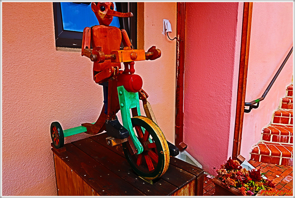 피노키오 동상 뒤에 있는 마을 건축물은 위에서 소개한 대로 중세의 고성과 같은 모습인데 고성의 꼭대기는 전망대입니다. 사자 두 마리가 지키는 출입구로 들어서면 처음 만나는 곳이 제페토골목인데요. 이곳에는 카페와 기념품점, 골동품 가구와 집기 등을 만날 수 있습니다. 제페토(Geppetto)는 피노키오의 창조자인 가공인물이라고 하네요.