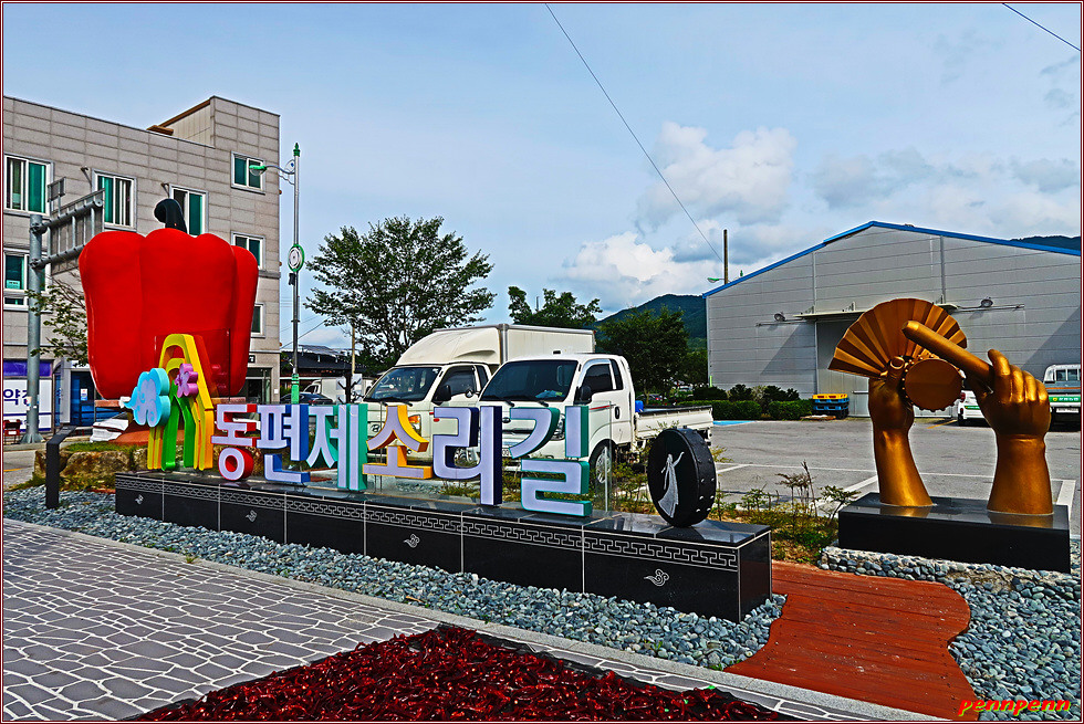 양묘장을 뒤로하고 도로를 따라 가면 운봉사거리인데요. 이곳에 판소리의 고장임을 알리는 동편제소리길 안내문과 대형 춘향골 파프리카 조형물이 설치되어 있어 길손의 눈길을 사로잡습니다. 운봉농협에서 직진해 대형벽화를 지나 좌측의 운봉초등학교 정문 쪽으로 가면 지리산 둘레길 2코스 출발점 안내문이 나오는데, 안쪽 서림공원에 도착해 이번 트레킹을 마무리합니다.