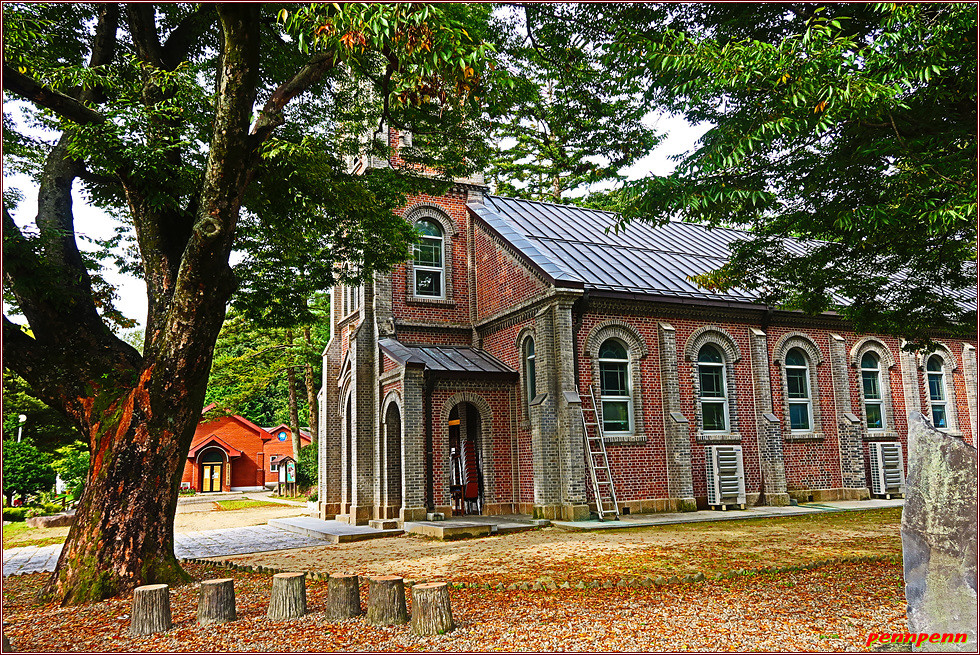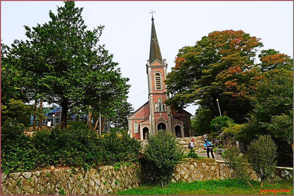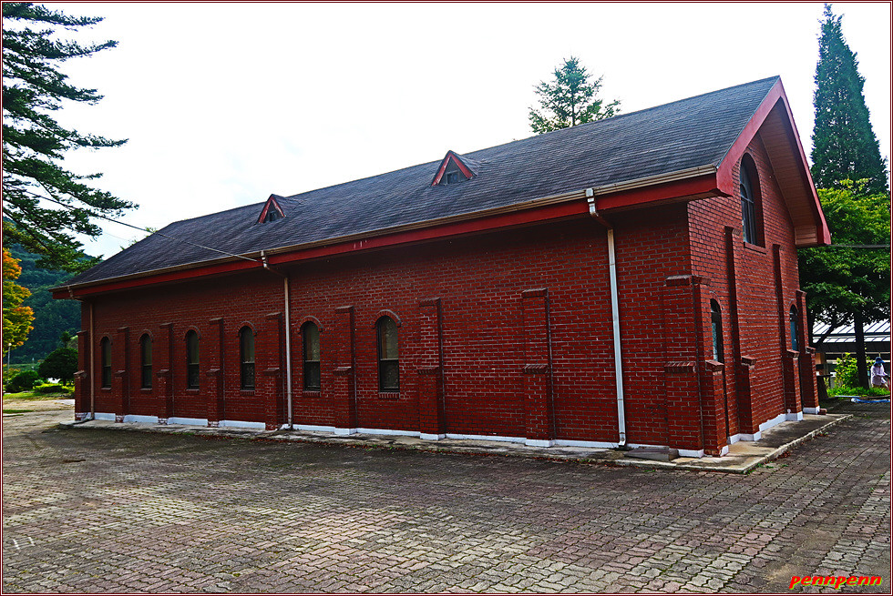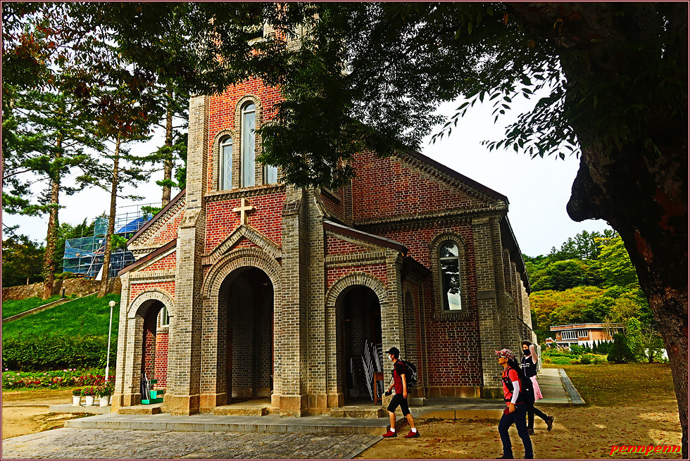 마치 서울 명동성당의 축소판 같이 고딕양식의 붉은 벽돌 건물입니다.
