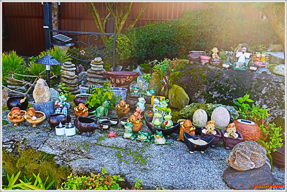 이제부터는 최종목적지인 국형사 이정표를 따라 갑니다. 지나가는 길목의 주택에는 아담한 정원이 있는데 아기자기한 소품들을 전시해 두어 길손의 눈을 즐겁게 만듭니다. 한창 신축중인 주택가와 대규모 아파트 단지를 지나면 혁신체육공원의 축구장입니다.