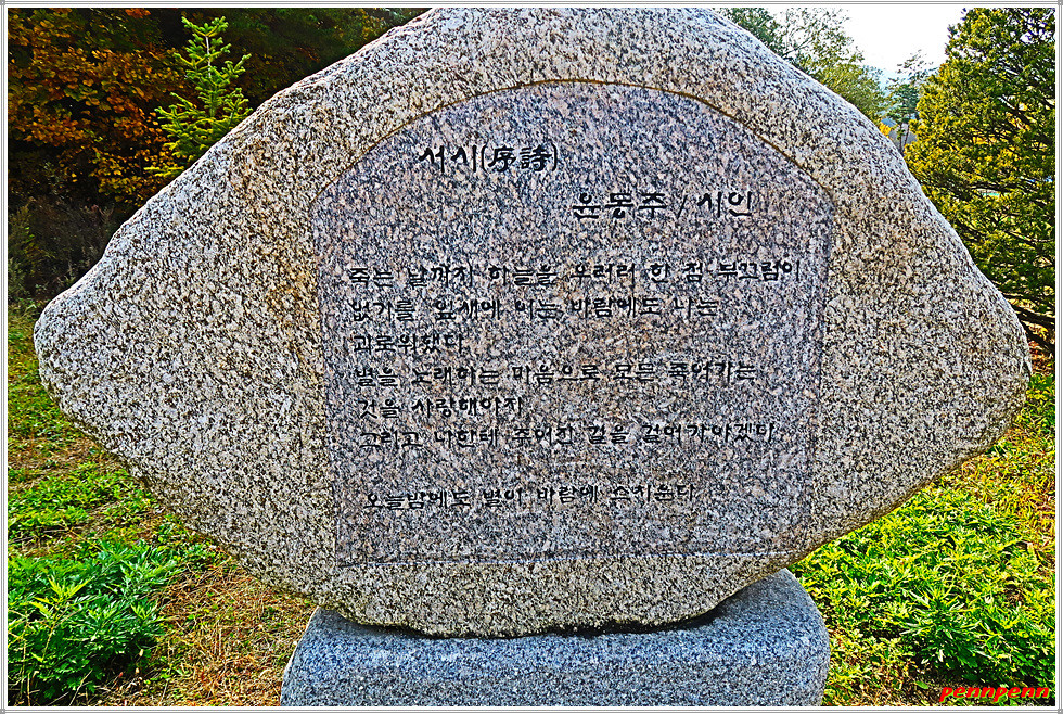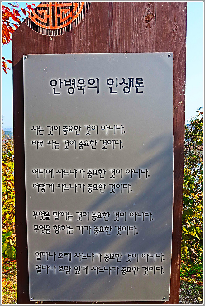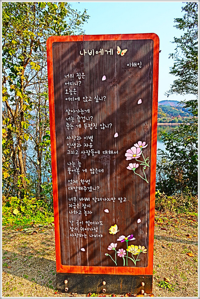 도로변에는 철학자 김형석과 이해인 수녀의 시가 게시되어 있습니다.