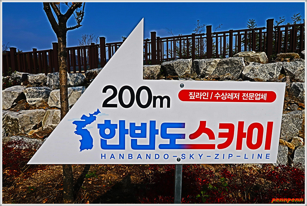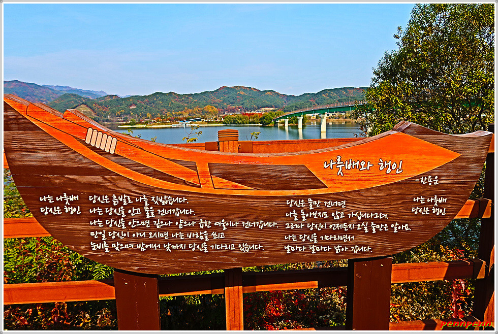 한반도섬을 알리는 조형물과 한반도섬으로 진입하는 한반도교를 지나면
