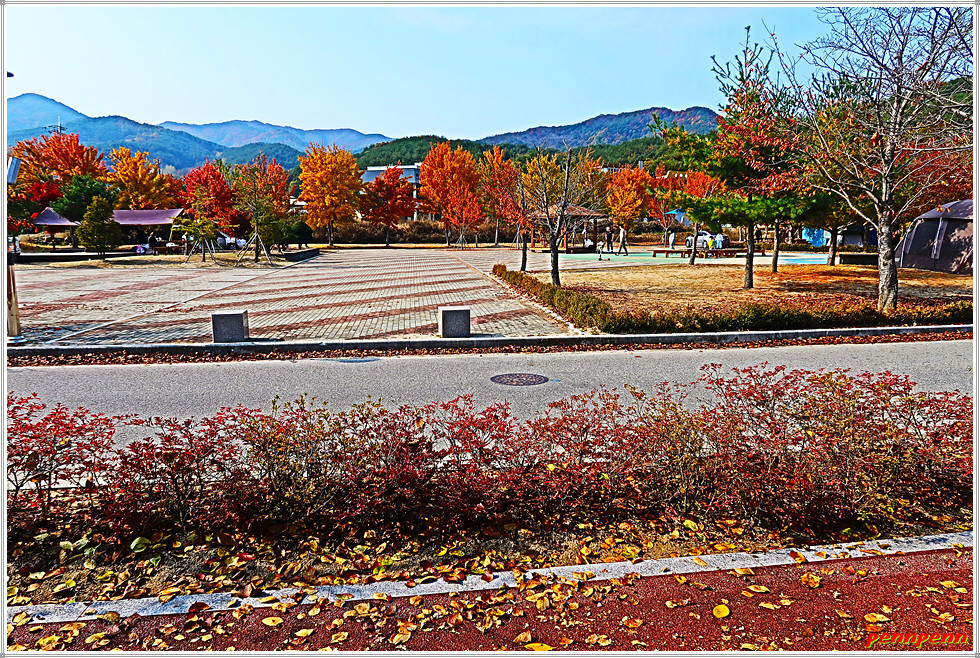 캠핑장에는 절정을 이룬 단풍이 가을의 정취를 만끽하게 해 주는군요.