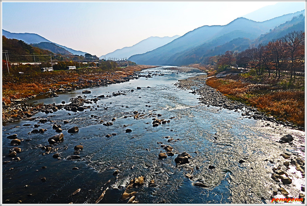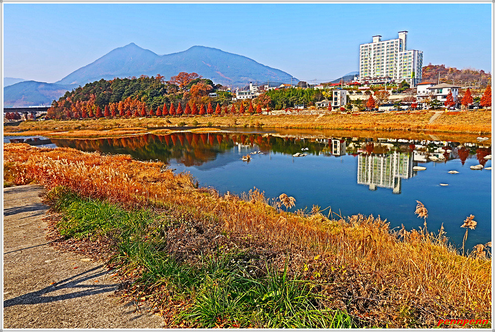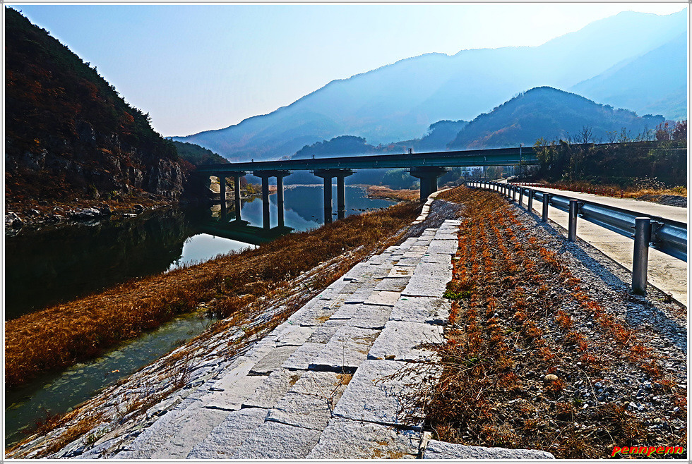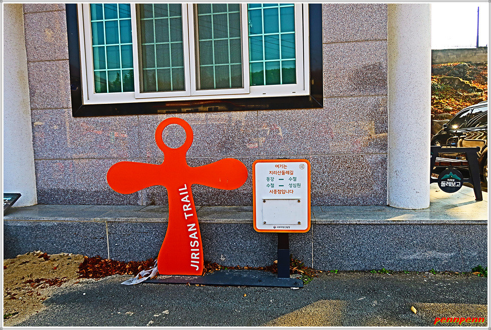 오늘 약 13km를 걷는데 3시간이 소요되었습니다. 시간당 4km를 걸을 수 있었던 것은 오르내림이 거의 없는 강변길이었기 때문입니다. 혹자는 매우 무미건조한 코스였다고 하지만 해동선원에서 많은 석불조각상을 만났고 산청의 펜션단지를 지나며 외관이 멋진 숙박업소를 볼 수 있었습니다. 무엇보다도 산 대신 경호강(남강)변을 걸으며 저물어가는 늦가을 풍경을 즐긴 것은 이외의 소득입니다. 극심한 미세먼지가 전국을 강타한 이날 산청지방은 한 때 미세면지가 보통수준이어서 마스크를 벗고 상쾌한 공기를 마실 수 있는 보너스도 받았습니다.