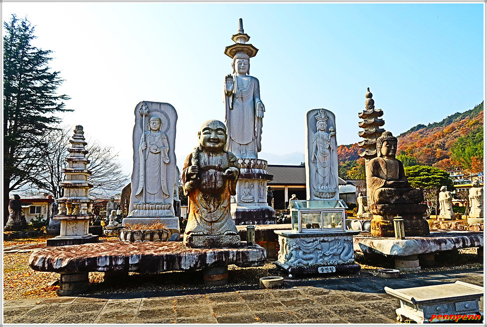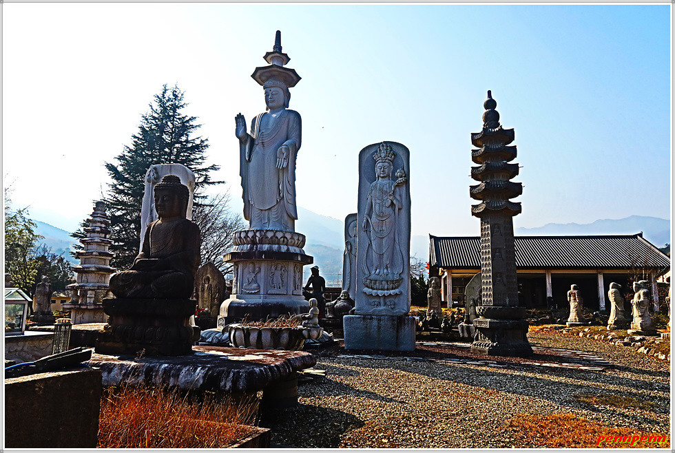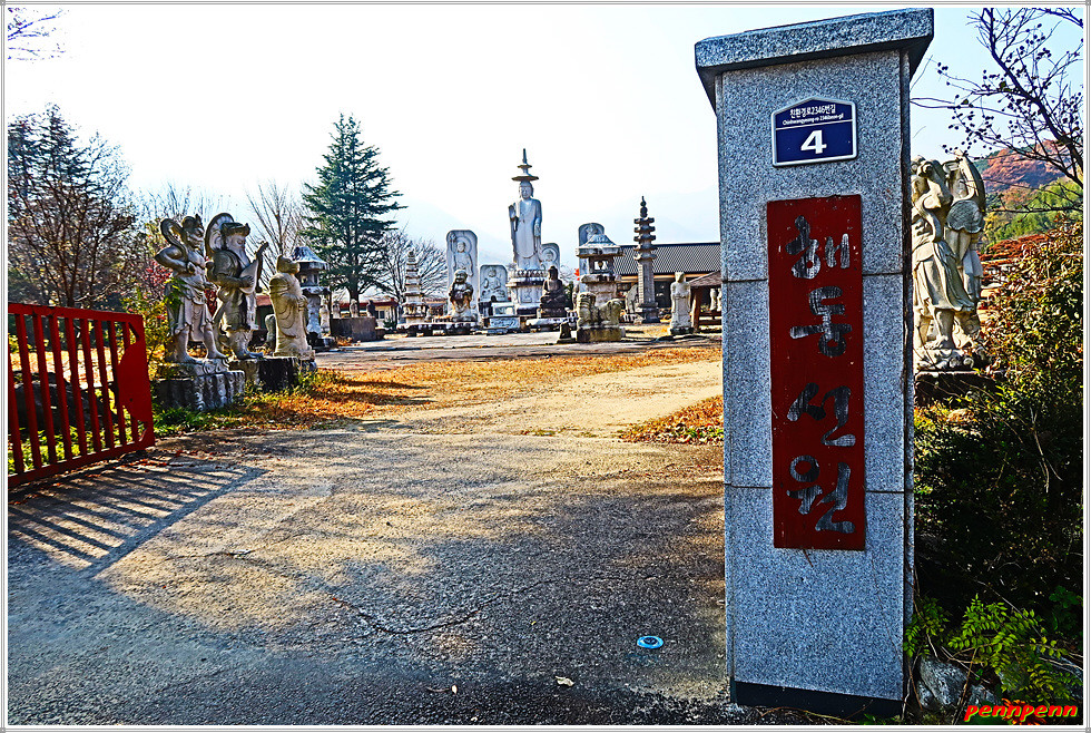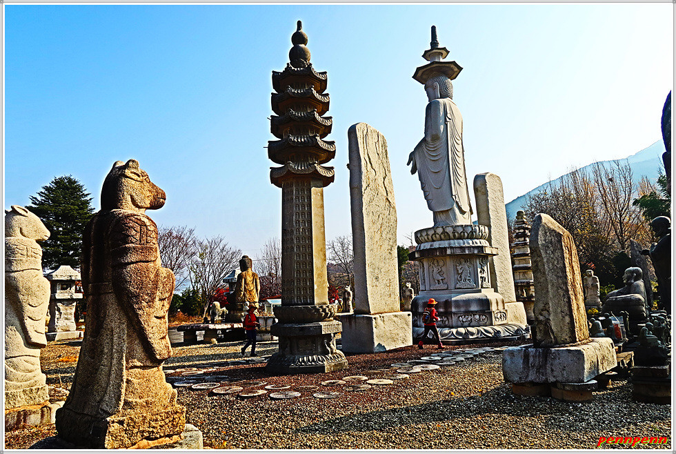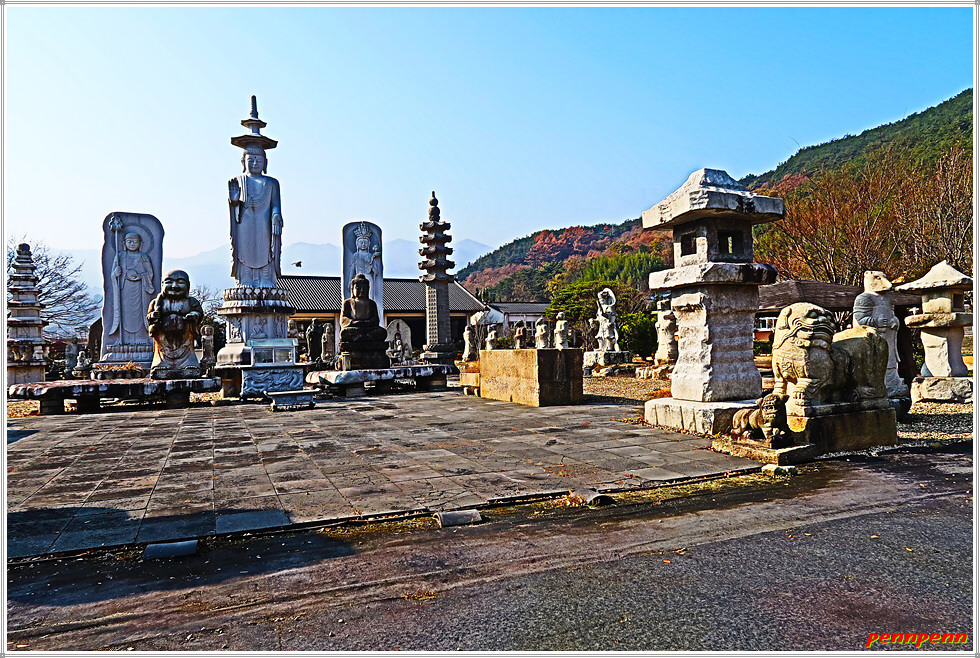 폐교된 운동장에 엄청난 규모를 자랑하는 불상과 석탑 등이 집단으로 도열하고 있어