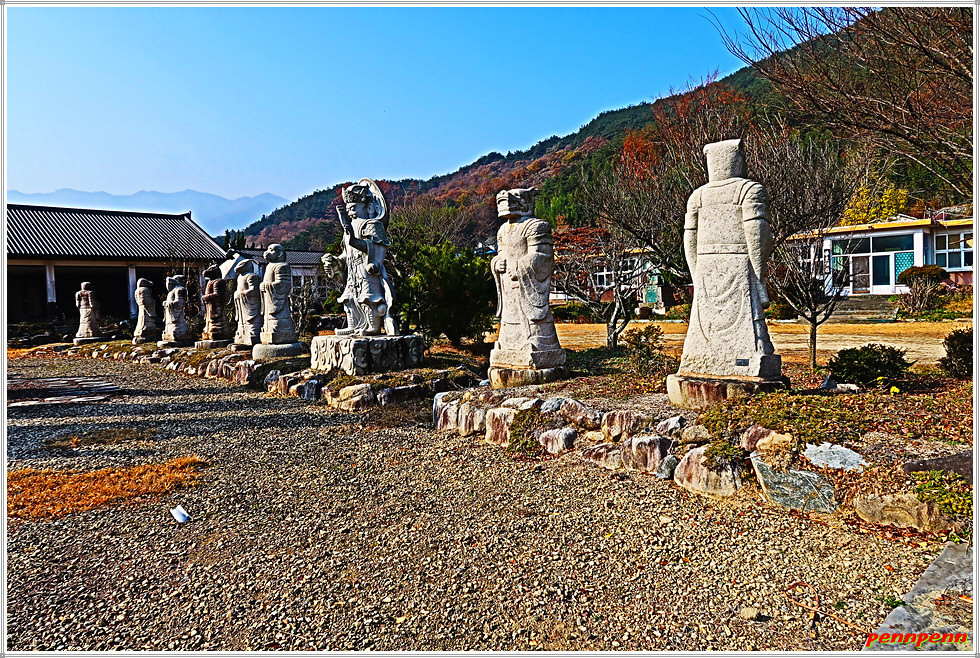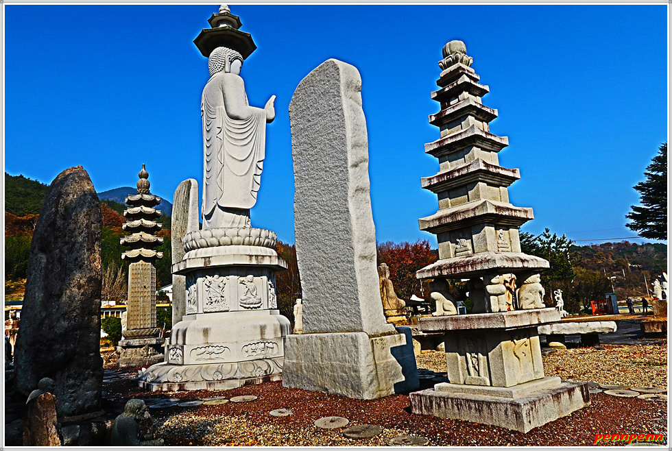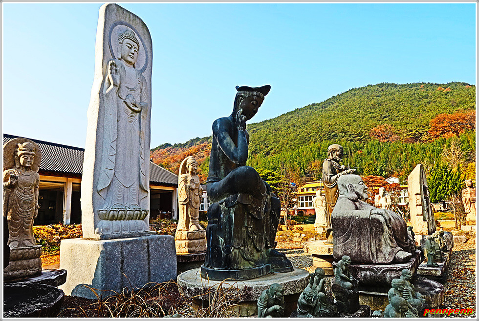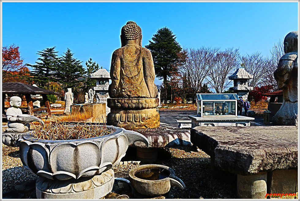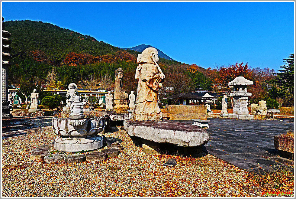 폐교된 운동장에 엄청난 규모를 자랑하는 불상과 석탑 등이 집단으로 도열하고 있어