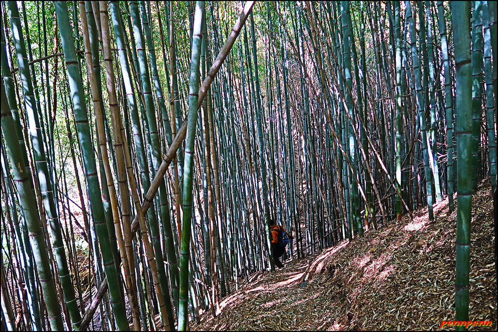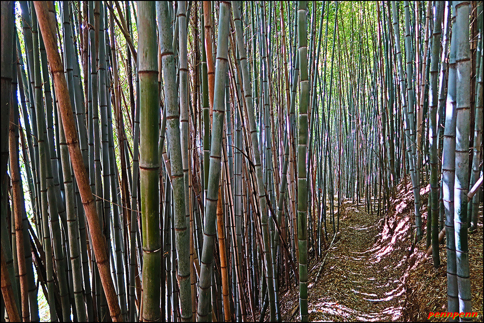 중태재를 내려서면 거대한 대나무숲인데요. 이곳 대나무 군락지는 필자가 경험한 대숲 중에서 울산소재 십리대숲 이래 가장 규모가 큰 것 같습니다. 이곳의 대숲은 키도 크고 매우 굵은 명품 대숲입니다. 대숲으로 조성된 길을 빠져 나가면서 대나무에 완전히 취해버렸습니다. 사실 이번 9코스는 볼만한 풍경도 기억할 만한 역사적인 문화재도 전혀 없는 무미건조한 길이었는데 이런 대숲을 보면서 보상받은 기분입니다.