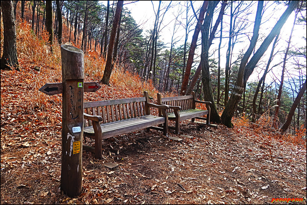 중태정자쉼터를 뒤로하고 사철나무와 대나무가 어우러진 곳을 지나면 도로통행금지 장치가 있는데요. 오늘 트레킹을 시작한 후 처음으로 맞이하는 호젓한 산길입니다. 여기서 산길을 200m 오르면 중태재(422m)입니다. 산청사람들은 이곳을 위태재라 부르고 하동사람들은 중태재라 부른다고 하는군요. 이 재의 남쪽은 산청군 시천면과 하동군 옥종면의 경계입니다.