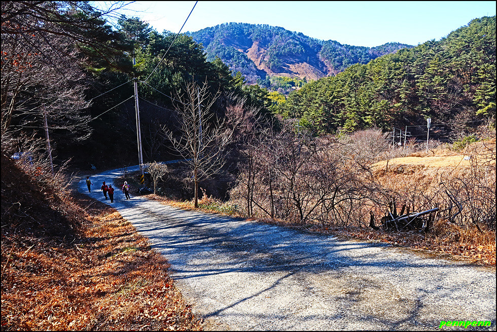 10코스의 들머리는 하동군 옥종면 위태리 위태마을회관입니다. 59번 국도변 상촌제 옆에 지리산 둘레길 기종점 조형물이 세워져 있지요. 상촌제(저수지) 옆 마을도로를 따라 가면서 뒤돌아보면 살얼음이 살짝 낀 저수지 너머로 위태마을이 살포시 보입니다. 큰 나무 한 그루를 지나가면서 좌측으로 고개를 돌리면 9코스를 답사하면서 넘었던 중태재(위태재) 고갯마루가 풍만한 여인의 허리처럼 잘록하게 누워 있습니다.