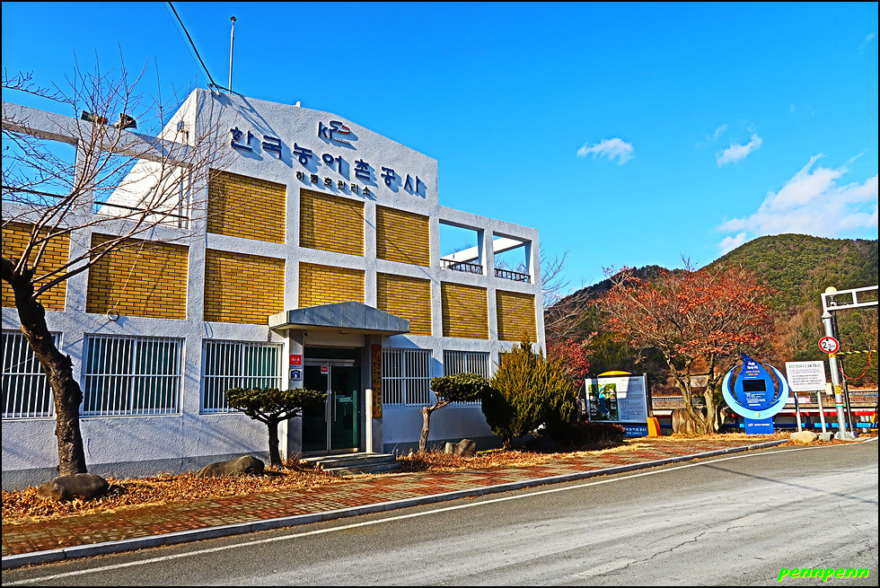 하동호가 내려다보이는 이곳은 나분마을인데요. 풍수지리에 따르면 이곳은 큰물을 만나는 곳이라고 한다는데, 하동호가 생겨 그 설을 입증했으며 풍광이 매우 아름다운 마을입니다. 닭장 밖으로 나온 토종닭을 오랜만에 보네요. 여기서 좌측으로 약 2km를 가면 하동호 관리사무소가 있는 목적지입니다.