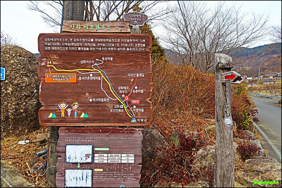 ▲ 코스 : 하동호관리사무소-평촌마을-관점마을-명사마을(상존티)-존티재-삼화실