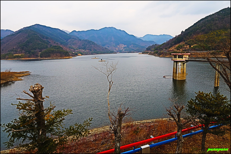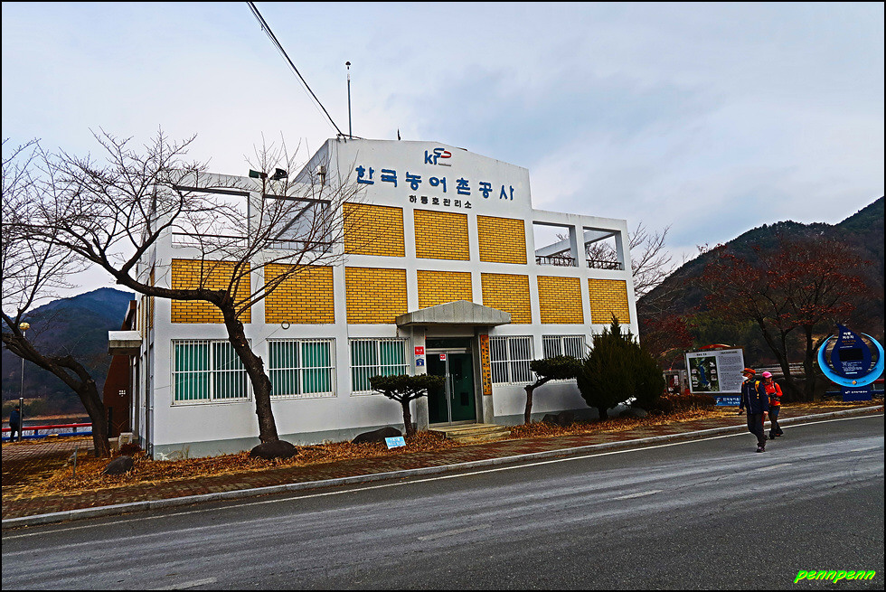 11코스의 들머리는 청암면 평촌리 소재 하동호 관리사무소입니다. 하동호는 하동군과 사천시에 농업용수를 공급하기 위하여 청암면 중이천이 횡천강과 합류하는 지점을 가로막아 조성한 하동댐 건설로 만들어진 인공호수입니다.