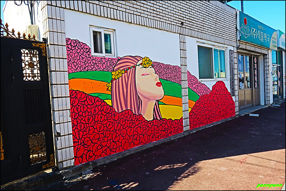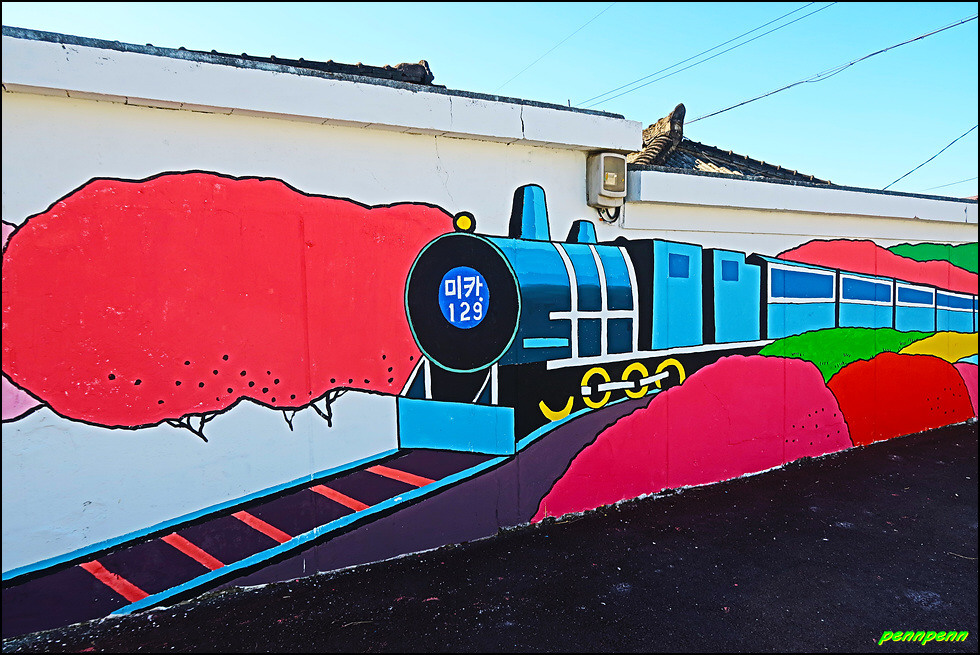 섬진강 기차마을과 장미공원을 알리는 벽화가 있어