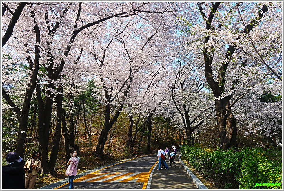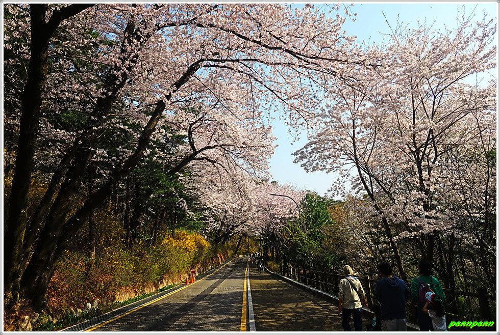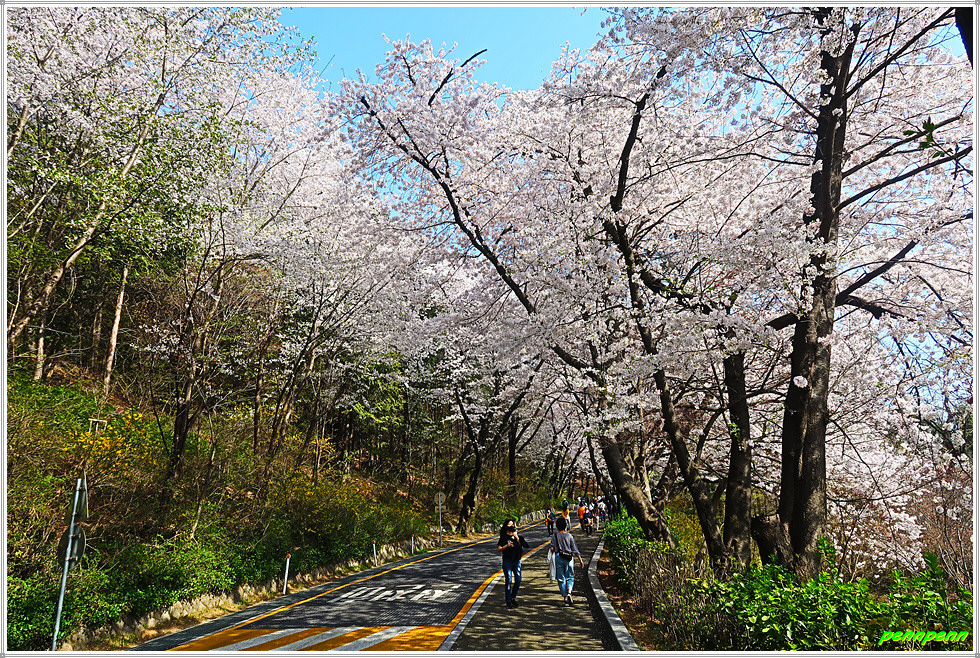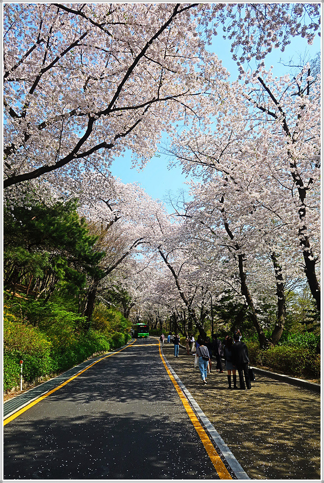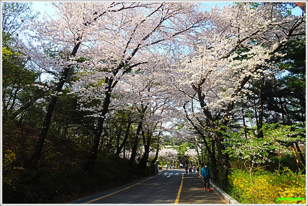 남산둘레길은 북측 순환도로와 남측 숲길을 연결한 길인데 필자는 북측과 남측의 순환도로를 걸었습니다. 남산은 여의도에 비해 벚나무의 밀집도는 다소 떨어지지만 호젓하게 산책을 하면서 벚꽃을 감상하는 재미를 만끽할 수 있습니다. 전 구간을 걷는 게 부담스럽다면 일부구간에서도 얼마든지 화려한 벚꽃을 만날 수 있습니다.(2022. 4. 11)
