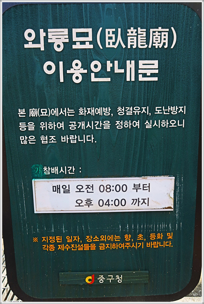 계단을 이용해 위쪽으로 오르면 와룡묘 현판이 붙은 관리사무소입니다.