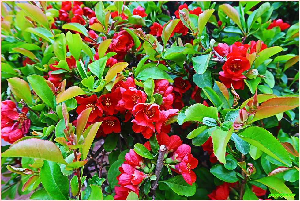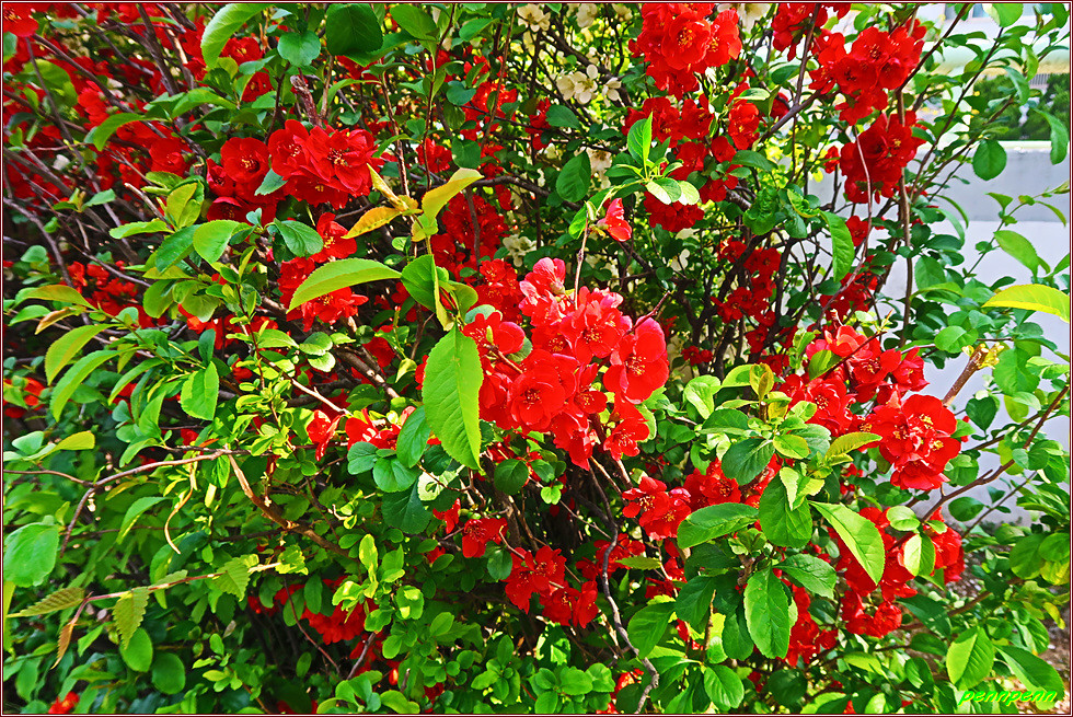 명자꽃은 봄에 피는 꽃 중에서 가장 붉은 꽃임에도 불구하고