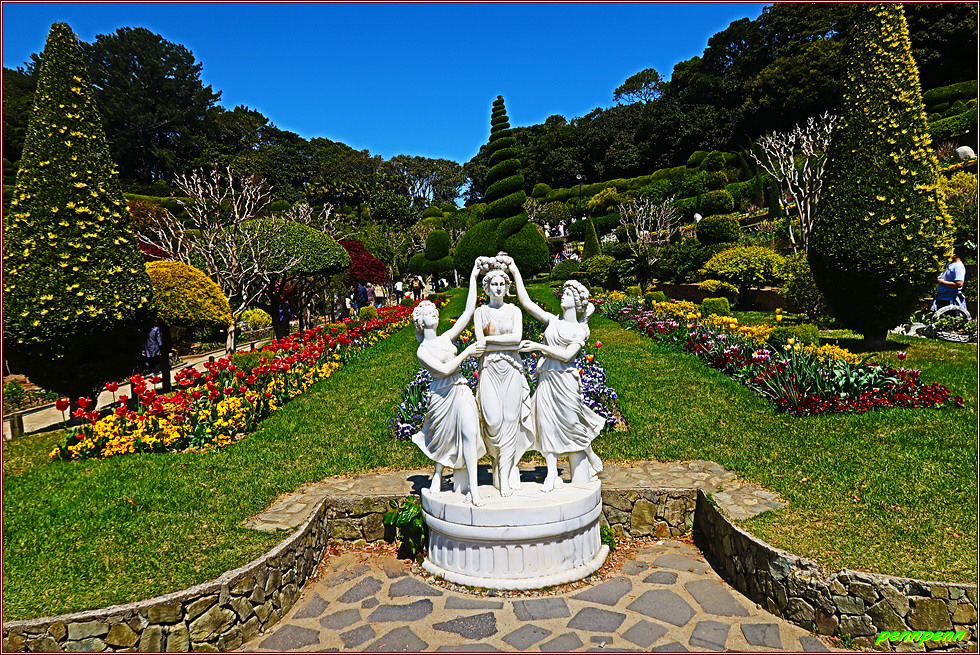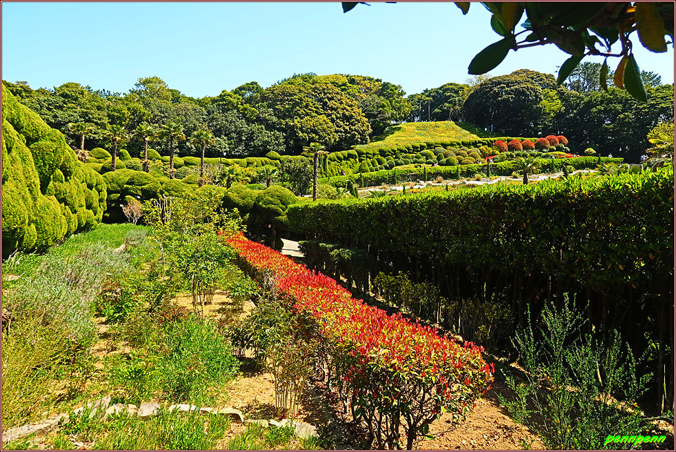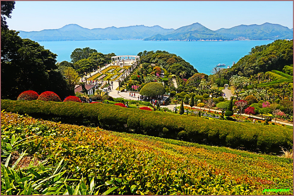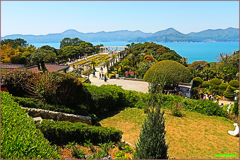 다음은 관람로를 따라 플라워가든으로 갑니다. 그런데 현지 이정표에는 플라워가든이라고 표기되어 있는데 보타니아 홈페이지에는 벤베누토정원이라고 기록되어 있어 조금은 헷갈립니다. 벤베누토정원은 이탈리아어로 “환영합니다”라는 뜻으로 각종 꽃의 아름다움이 시작되는 곳입니다. 봄에는 튤립과 양귀비, 여름에는 수국과 천사의 나팔, 가을에는 란타나와 부시세이지, 겨울에는 동백과 피라칸사 등이 대표적이며 계절별로 다양한 식물의 정원을 거닐며 아름다운 외도의 정취에 빠지게 됩니다. 무엇보다도 이곳에서 바라보는 비너스가든의 아름다움은 정말 멋집니다.