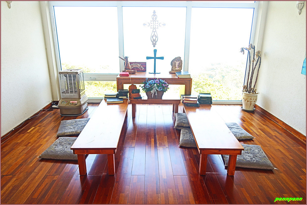 에덴교회가 있는 에덴가든에 가면 북쪽으로 조망이 터집니다. 특히 매우 아담한 주황색 지붕의 에덴교회에서는 예배를 볼 수도 있으며 교회 옆 언덕은 쉼터로 조성되어 발품을 쉬어가기에 안성맞춤인 곳입니다.
