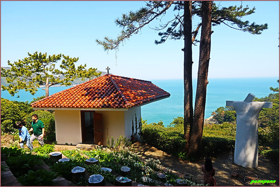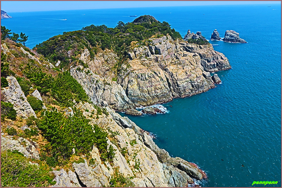 한 구비를 돌아가면 파노라마 전망대인데, 이곳에 서면 해금강과 일본 대마도를 조망할 수 있으며, 외도 남쪽 여러 개의 작은 바위섬을 볼 수 있습니다.