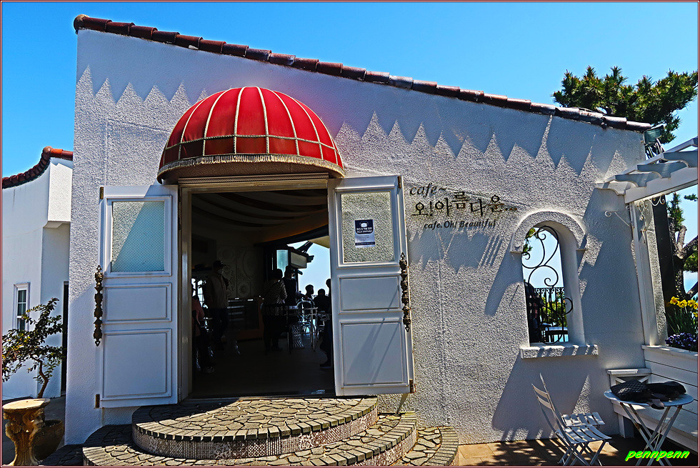 여기서 위쪽으로 오르면 전망카페인 “오! 아름다운”입니다. 이곳은 전망대 겸 휴식공간으로서, 보행자들은 반드시 이 카페의 계단을 올라야 다음 코스로 진행이 가능합니다.