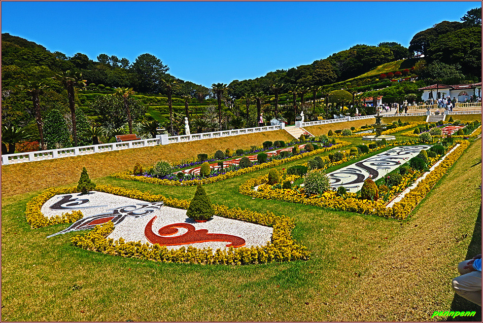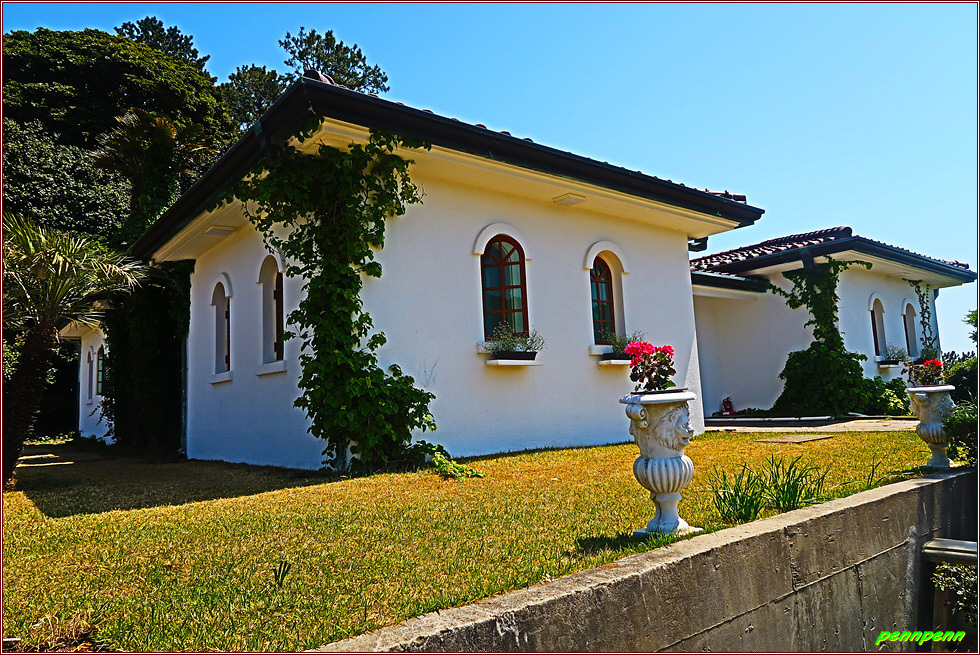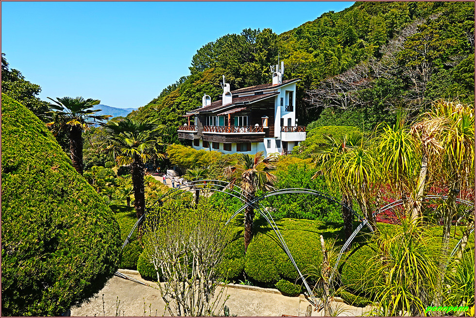 정원 맞은편으로 가서 비너스상이 있는 곳을 바라보면 비너스가든이 정말 아름다움을 실감하게 됩니다. 비너스가든의 위쪽에 있는 건축물(주황색 지붕)은 리하우스인데요. 이곳은 KBS 드라마 <겨울연가>의 마지막 회 촬영 현장으로 널리 알려져 많은 사람들의 기념사진 촬영지로 사랑받고 있는 사택으로 현재 건물 안으로 들어갈 수는 없습니다.