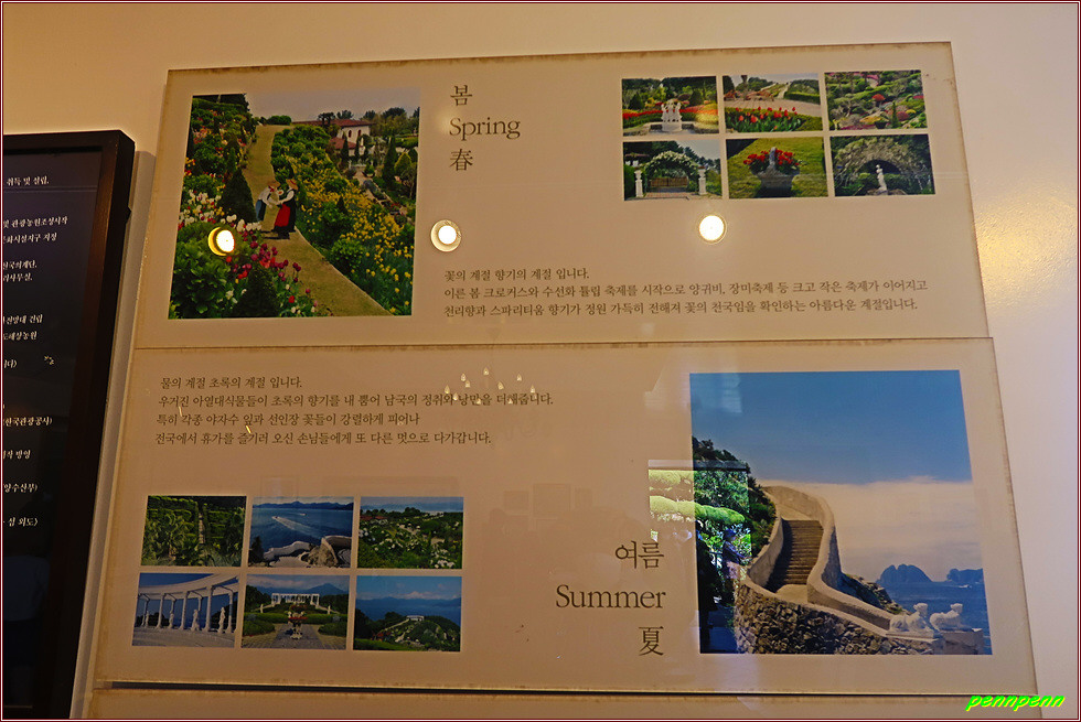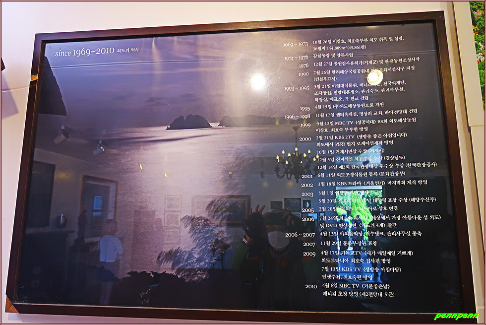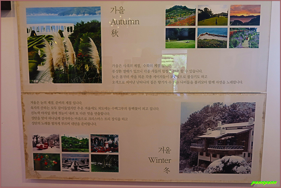 기념관 안으로 들어갑니다. 이곳에는 이창호-최호숙 부부가 1969-1973기간 중 외도를 취득한 이후부터 현재에 이르기까지 황무지에서 멋진 관광농원(식물의 낙원)을 개발해 세계에서 가장 아름다운 섬으로 만기들까지의 과정을 사진과 자료로 전시하고 있습니다.