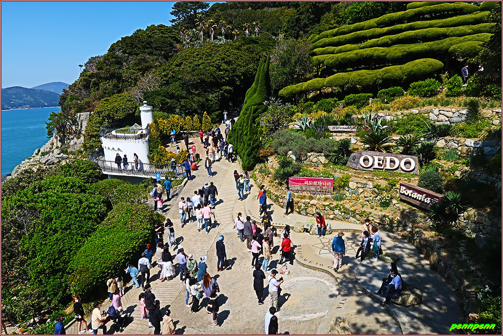 경남 거제시 일운면 와현리 소재 외도 보타니아는 약 50여년 전부터 민간인(이창호-최호숙) 부부가 섬을 사들여 꾸민 해상관광농원으로 1995년 개장한 이래 2천만명 이상이 다녀간 남해안 최대의 관광명소입니다. 현재 약 4만 5천여 평의 동백 숲이 섬 전체를 덮고 있으며, 야자수 및 선인장 등 아열대식물이 가득하고, 스파리티움과 마호니아 등 희귀식물도 볼 수 있습니다. 편백나무 숲으로 만든 천국의 계단, 비너스 가든, 벤베누토 정원 등도 볼거리입니다. 참고로 보타니아(botania)는 보타닉(botanic, 식물)과 유토피아(utopia, 낙원)의 합성어로 “식물의 낙원”을 뜻합니다.