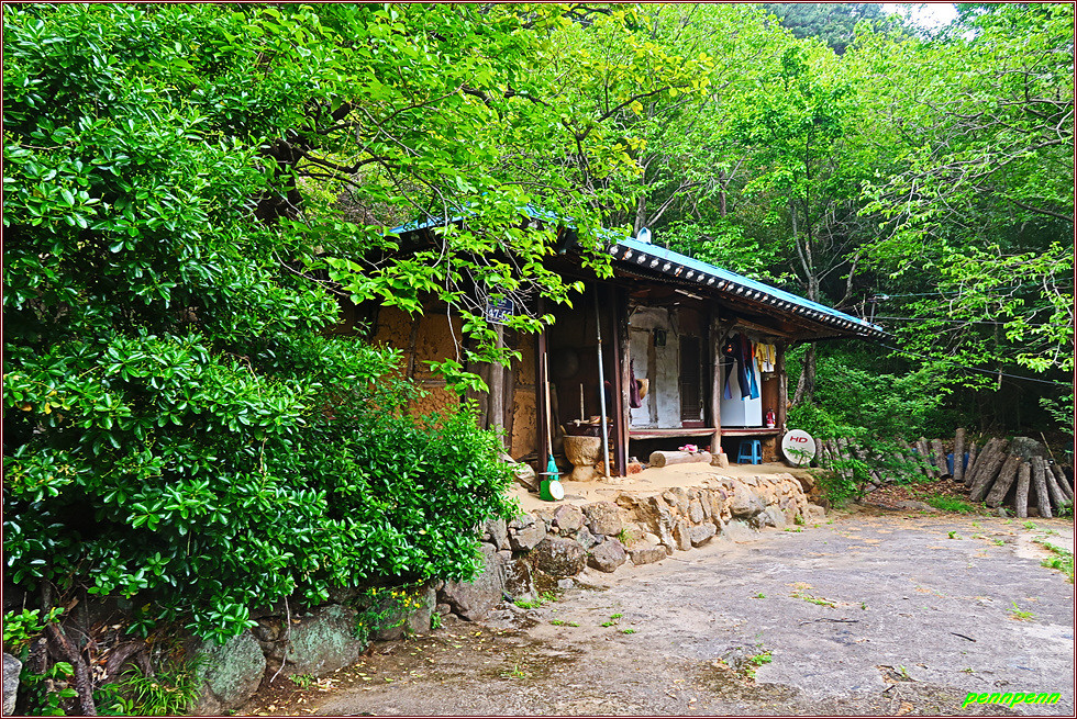 산길은 점점 가팔라지지만 길손을 보며 방긋 웃는 큰꽃으아리를 보면서 마음의 위로를 받습니다. 능선을 만나 북쪽으로 갑니다. 노송이 유난히 많은 군락지를 지나가니 발걸음을 한결 가볍습니다. 해발 약 500m 고지능선을 가다가 좌측으로 구부러진 산길을 걸으니 비포장도로에 정자가 있는 목아재입니다. 토지면 외곡리 소재 목아재는 봉애산(6123m) 동쪽 남북으로 이어진 임도에 있는 고갯마루로 섬진강에서 북쪽으로 이어진 임도는 거리가 무려 6.3km에 달할 정도로 매우 깁니다. 북쪽으로는 황장산 능선 및 지리산 주능선이 있을 것입니다.