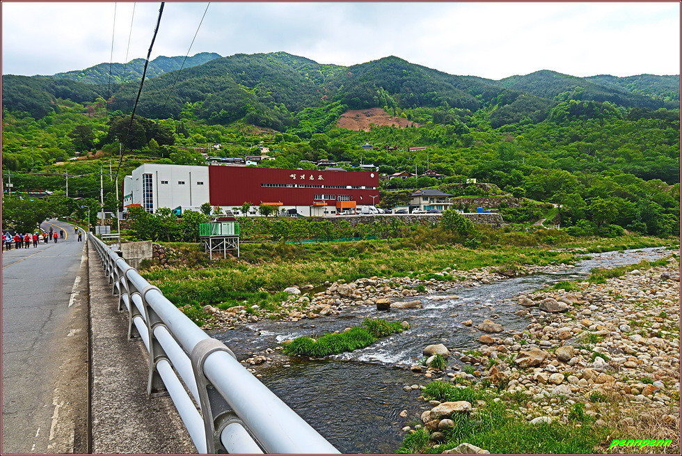 한수천 계곡을 건너 도로를 만나 좌측으로 조금 가니 목적지인 송정마을입니다. 오늘 약 11km를 걷는데 4시간 정도 걸렸습니다. 사실 둘레길 치고는 거리가 다소 짧은 편이지만 작은재와 봉우재를 넘으며 진이 다 빠져버려 난이도가 가장 높은 코스 중의 하나입니다. 이번 코스는 둘레길이 아니라 100% 산행이었거든요. 처음 둘레길 코스를 설계하면서 이 코스 대신 화개장터에서 섬진강을 따라 원송강변유원지로 연결했더라면 참 좋았을 것입니다. 왜냐하면 이 길은 전국에서 가장 아름다운 길 100선에 선정된 명품길이기 때문입니다.