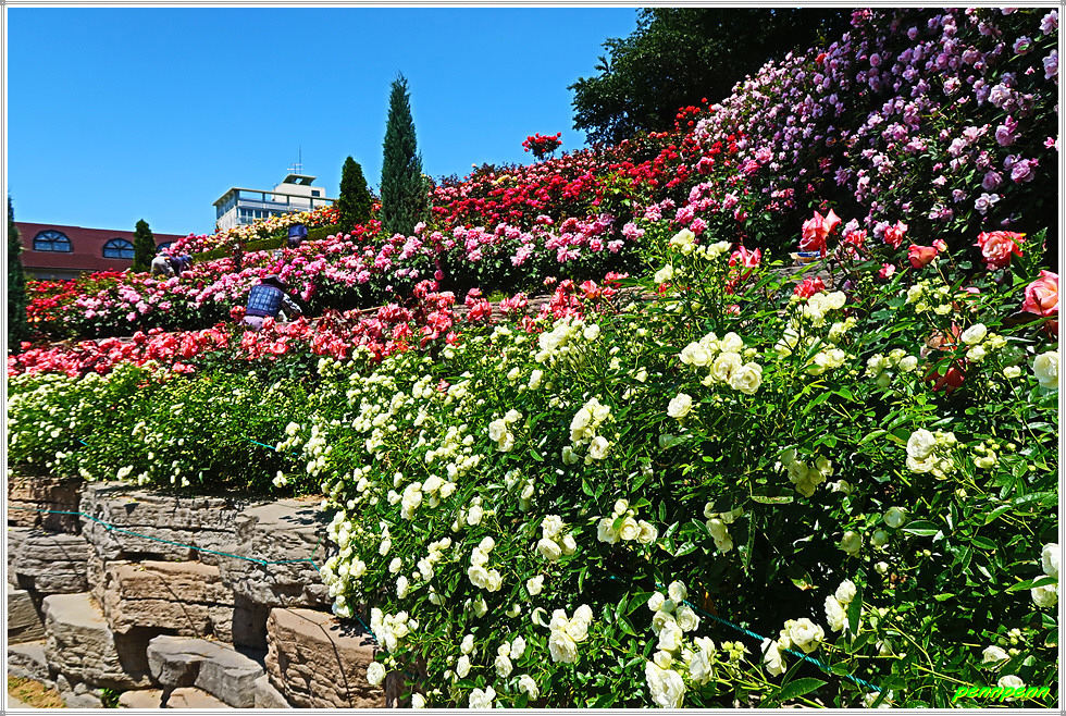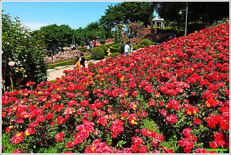 국내 최대 규모로 14,270㎡의 면적에 160여 종의 다양한 품종의 장미들이