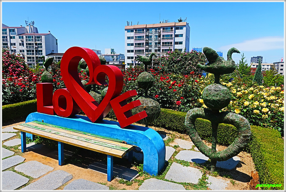 동물모형과 하트 형상, 대형장미꽃 시계 등 볼거리가 매우 많습니다.