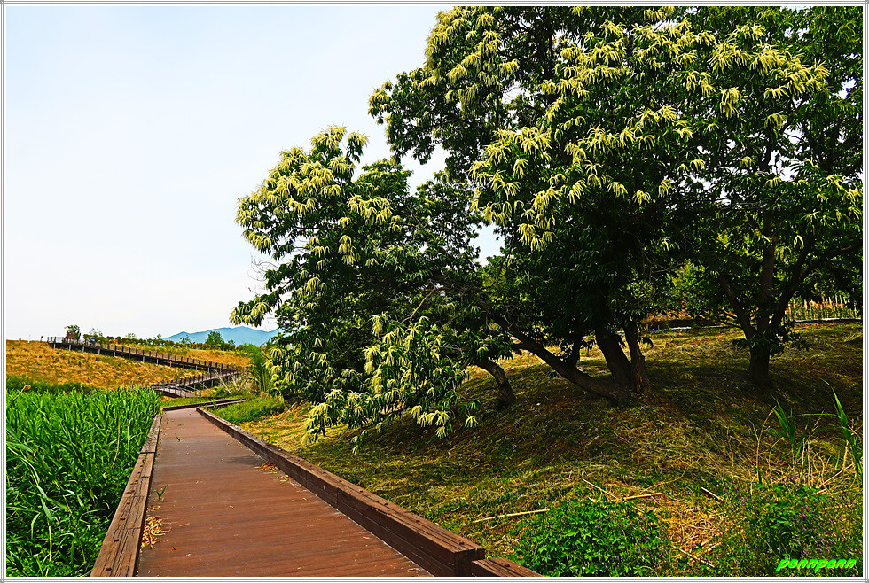 용호정 뒤 좌측으로 가면 큰 밤나무가 밤꽃을 활짝 피우고 있는데 그 특유의 냄새가 코를 자극합니다. 이 때 맞은편에서 강아지 한 마리가 다가옵니다. 굉장히 앙증맞은 강아지인데 아마도 주인을 잃은 것 같습니다. 나중에 뒤따라 온 동행인의 말에 의하면 누가 강아지를 찾았다는데 주인을 만났기를 바랍니다. 섬진강 둑에 올라 뒤돌아보니 방금 저쪽으로 가던 강아지가 다시 이쪽으로 오는 모습이 보이더군요.