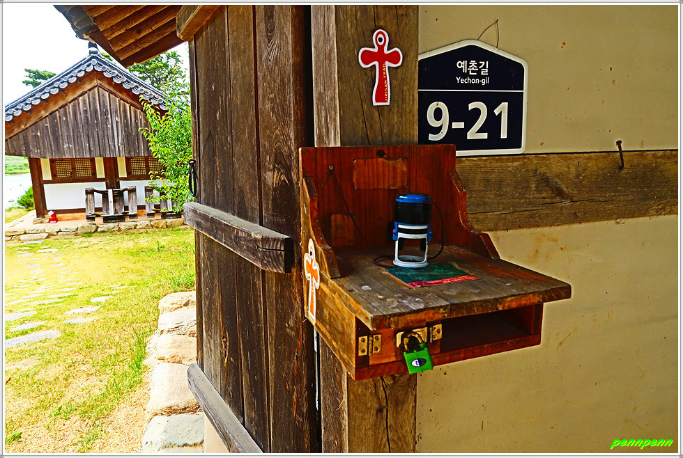19코스의 들머리는 구례군 토지면 오미리 오미마을의 오미정(운조루 앞)입니다. 지도를 보면 여기서 출발하는 길이 각각 달리 표시되어 있지만 남쪽의 곡전재를 거쳐 섬진강변으로 가는 게 올바른 방법입니다. 곡전재는 일제강점기에 지은 조선후기 한국전통 목조건축양식의 주택으로서 향도문화유산으로 지정된 전통가옥으로 한옥민박집입니다. 곡전재의 기와지붕을 보며 발걸음을 옮기면서 안내문을 지나갑니다.