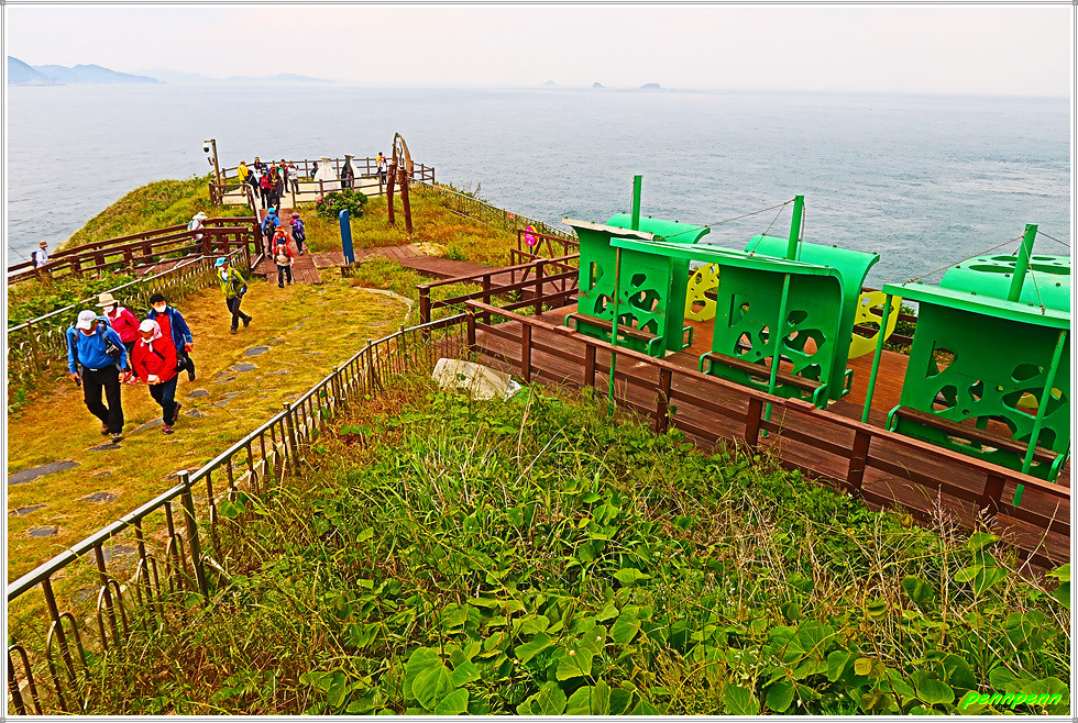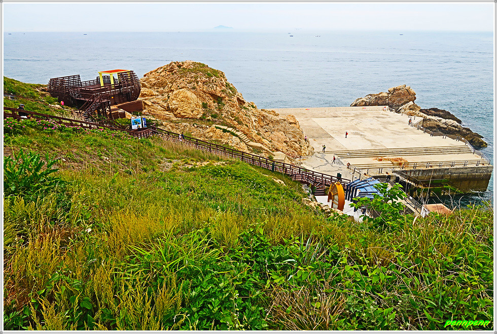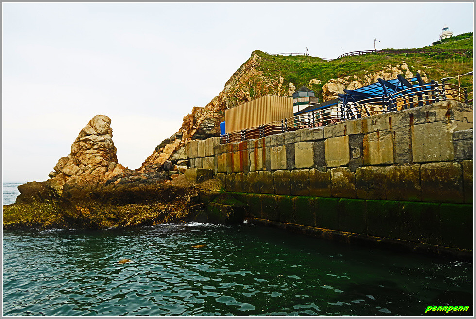 등대 뒤로 돌아가 물범조형물을 감상한 후 계단을 이용해 바닷가로 내려섭니다. 아래쪽에는 기암과 망망대해뿐 특별한 볼거리는 없습니다. 단 사자머리를 닮은 기암이 가장 돋보이는 자연이 빚은 조각작품입니다.