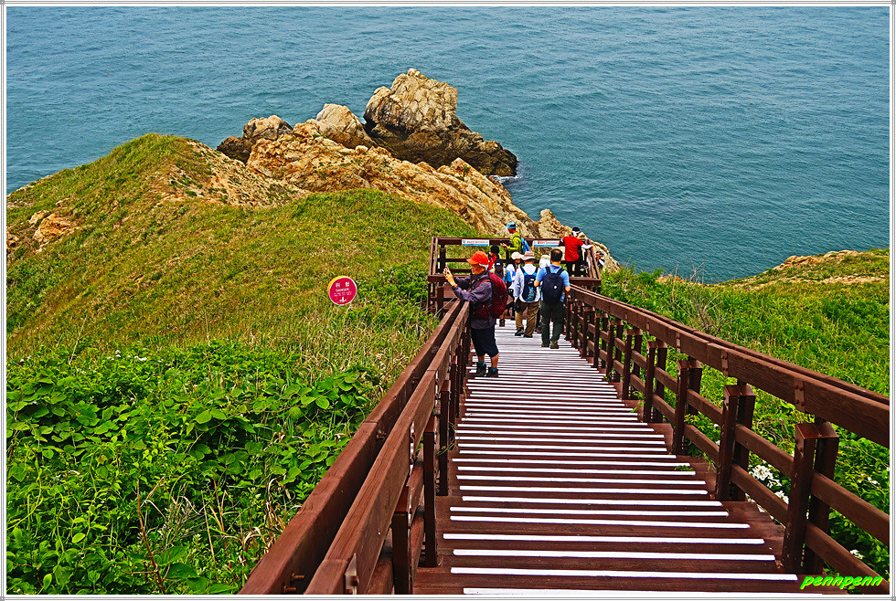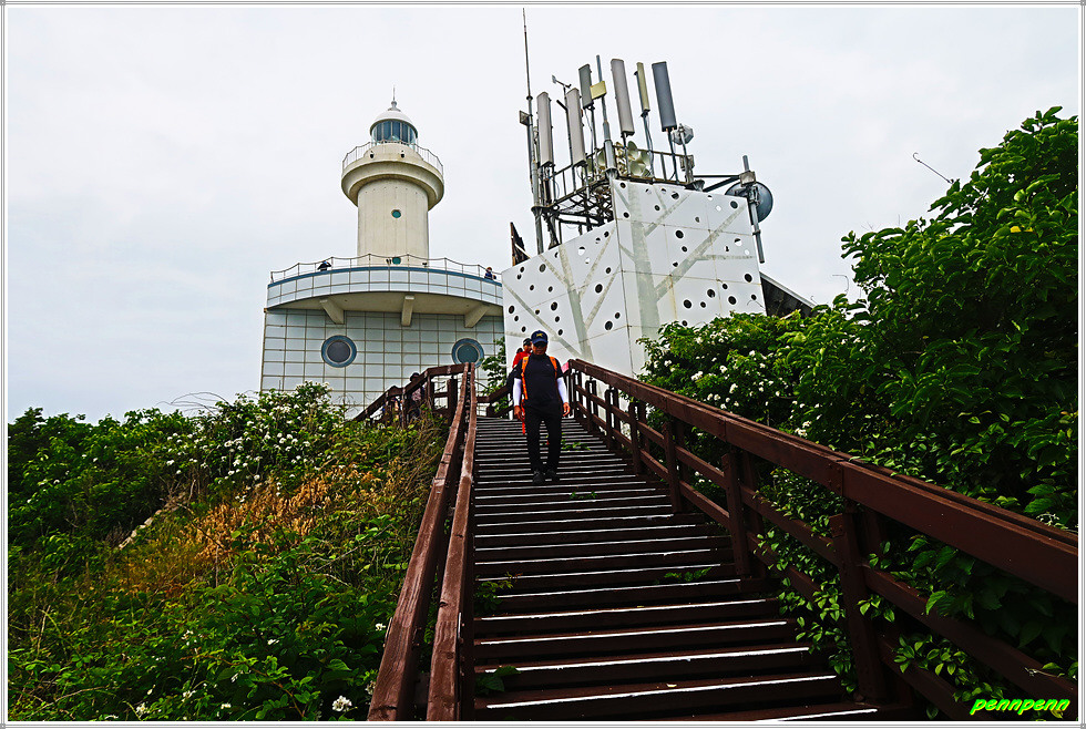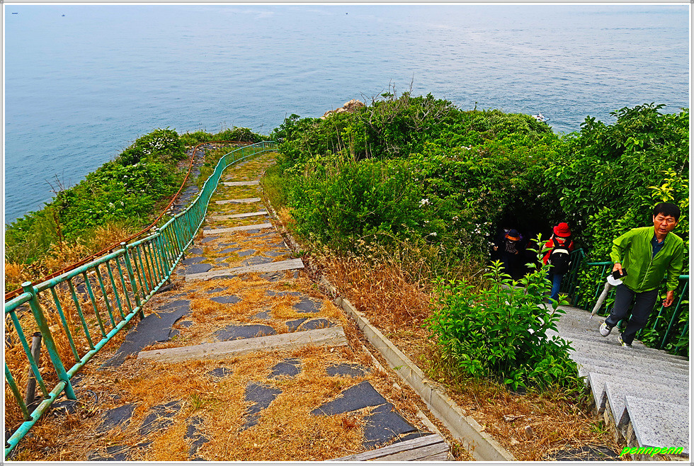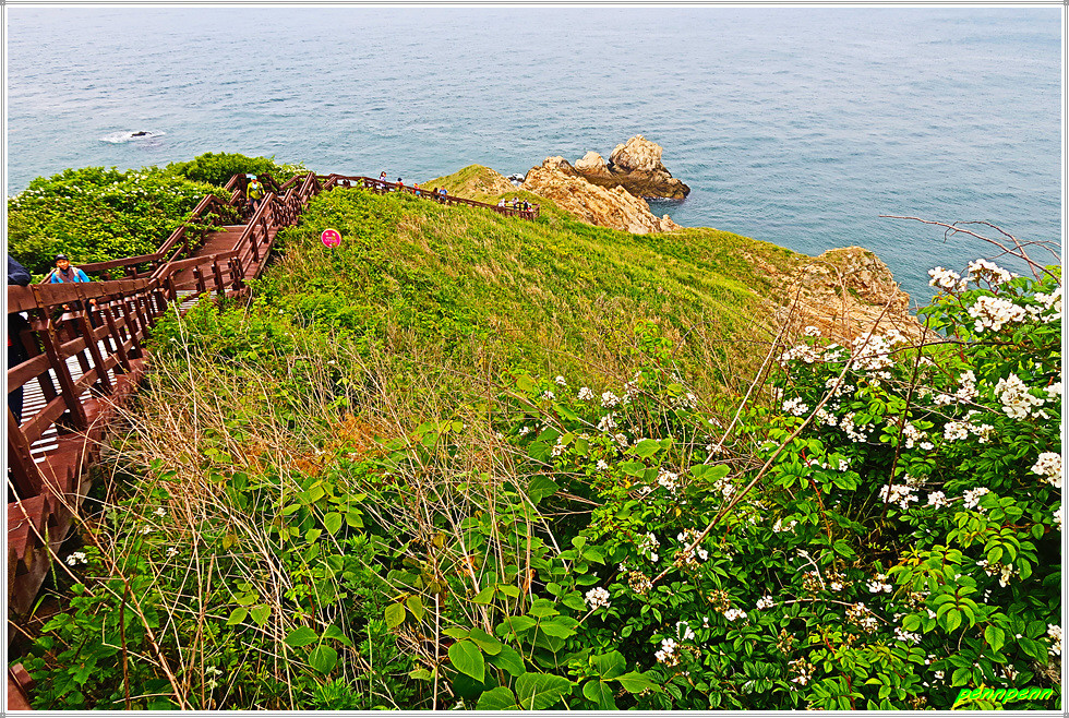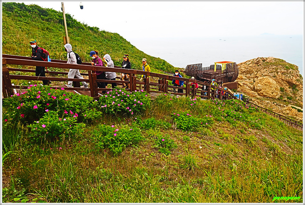 사람들은 서둘러 계단을 오릅니다. 옹도등대섬의 지도를 살펴본 후 계속 오르는데 계단 옆에는 해당화가 탐스럽게 피어 있어 잠시 발걸음을 멈추게 합니다.