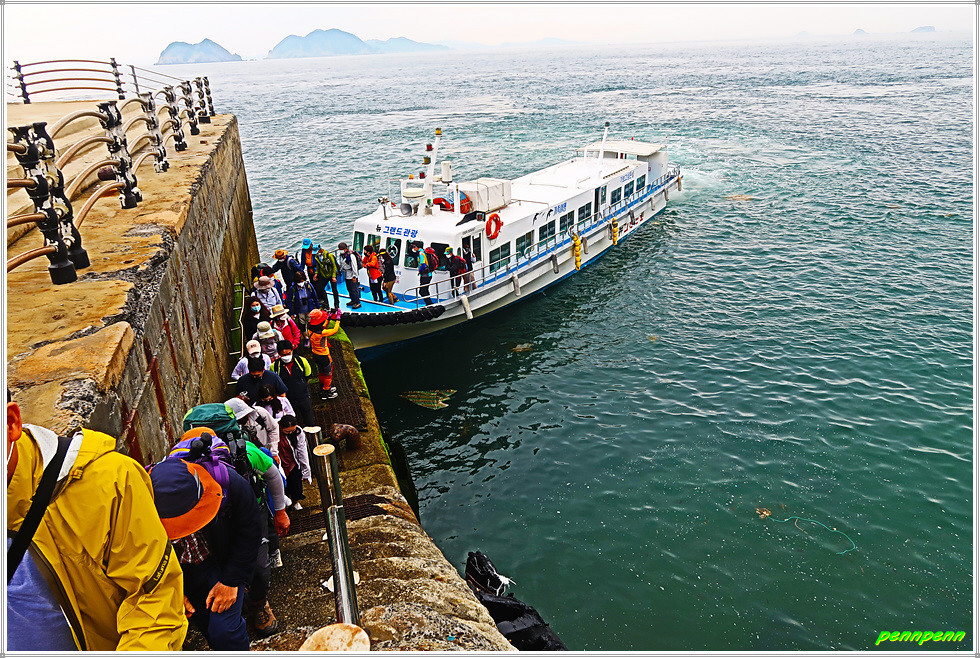 선착장으로 되돌아와 유람선이 출항할 때를 기다립니다. 우리는 섬에 상륙한지 30분 후 이곳에서 기다리던 유람선을 타고 태안해안 국립공원의 가의도와 주변 해안에 서 있는 기암(독립문바위, 사자바위, 코바위)을 감상한 후 안흥항으로 귀환합니다. 옹도에서 출발해 해상의 기암을 들러보고 안흥항으로 오는 데 약 1시간 20분이 소요되었습니다.