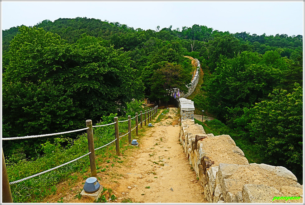 북문 우측의 산성길을 오릅니다. 상당히 가파르지만 길이 잘 조성되어 있어 위험하지는 않습니다. 북장대터에 오르면 서쪽으로 멀리 석모도의 모습이 아련합니다. 장대(將臺)는 전쟁 시 군사지휘에 용이한 곳에 설립한 장군의 지휘소입니다. 강화산성에는 남장대와 북장대 그리고 서장대가 있었으나 모두 허물어진 것을 2010년 남장대만 복원했다고 합니다.